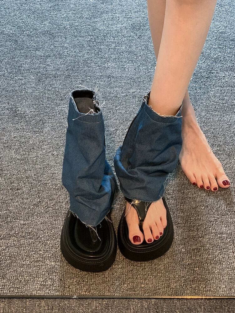 しかし、ニーハイブーツレディース 2023 夏の新しいファッション eign スタイルレトロな快適な厚底ピンチカジュアルサンダルトレンド 靴 シューズ サマー 夏物 jxjxf41387258519