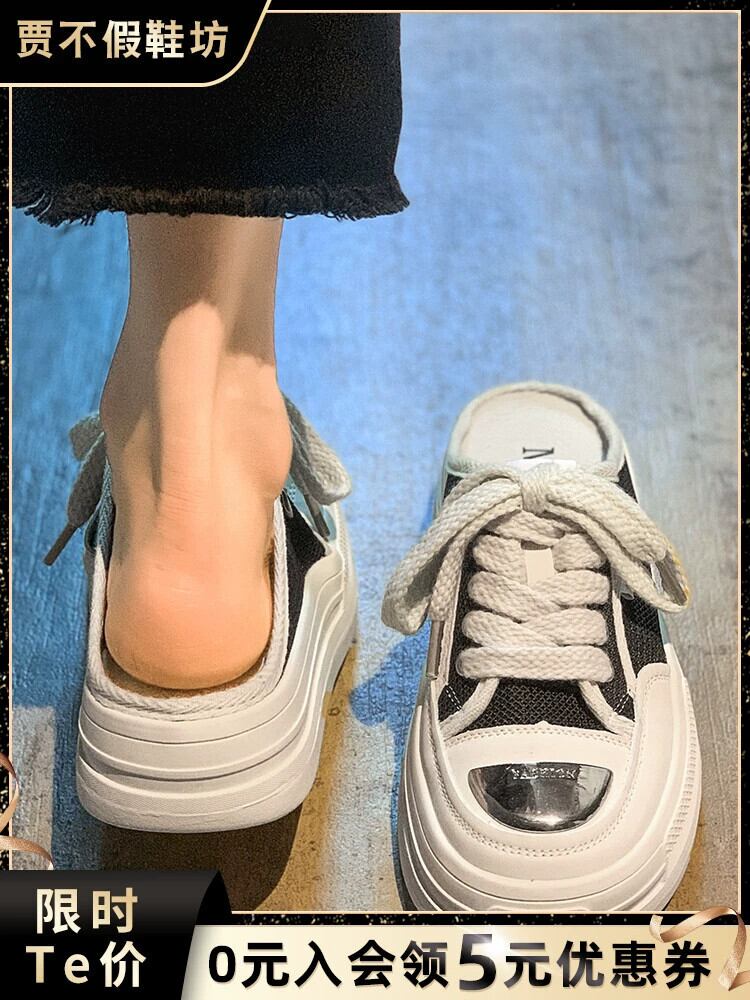 包頭スリッパレディースアウター 2023 夏の新ファッション eign スタイルレトロオールマッチ厚底キャンバスサンダルとスリッパ ミュール 靴 シューズ サマー 夏物 jxjxf71426958919