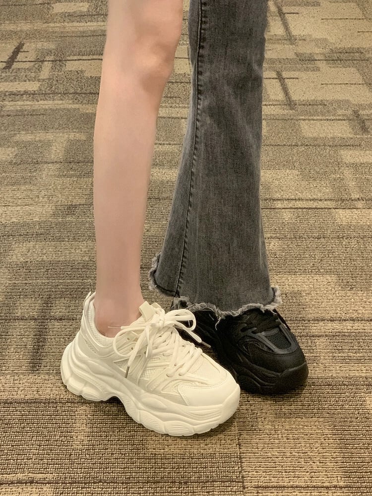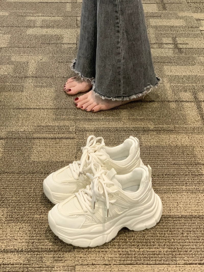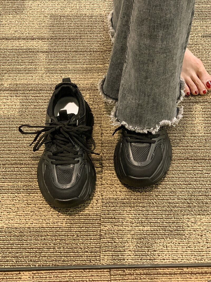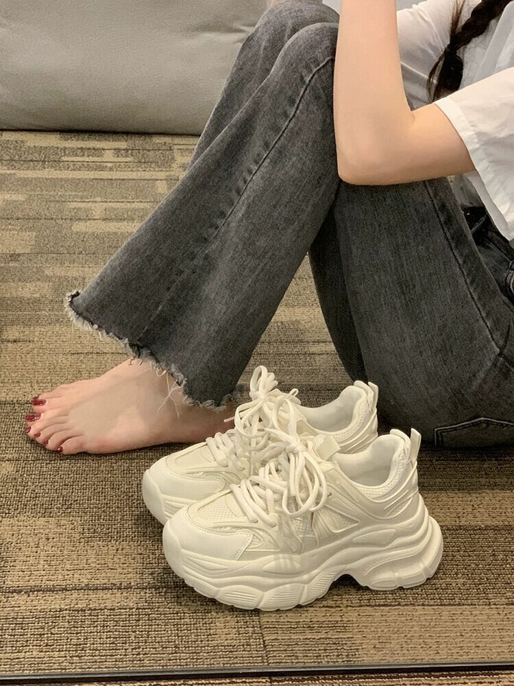 厚底スニーカー女性の 2023 夏の新しいメッシュ表面通気性を高めた小さなランニングカジュアルパパシューズ 靴 サマー 夏物 jxjxf40787746500