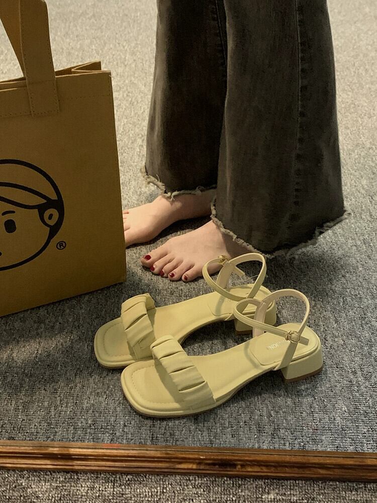 太いヒールサンダルレディース 2023 夏の新しいフレンチスタイルのレトロなシンプルな eign スタイルオールマッチ一言でハイヒールのトレンド 靴 シューズ サマー 夏物 jxjxf72019881286