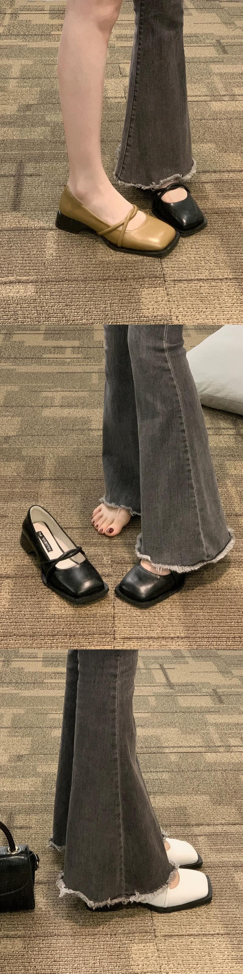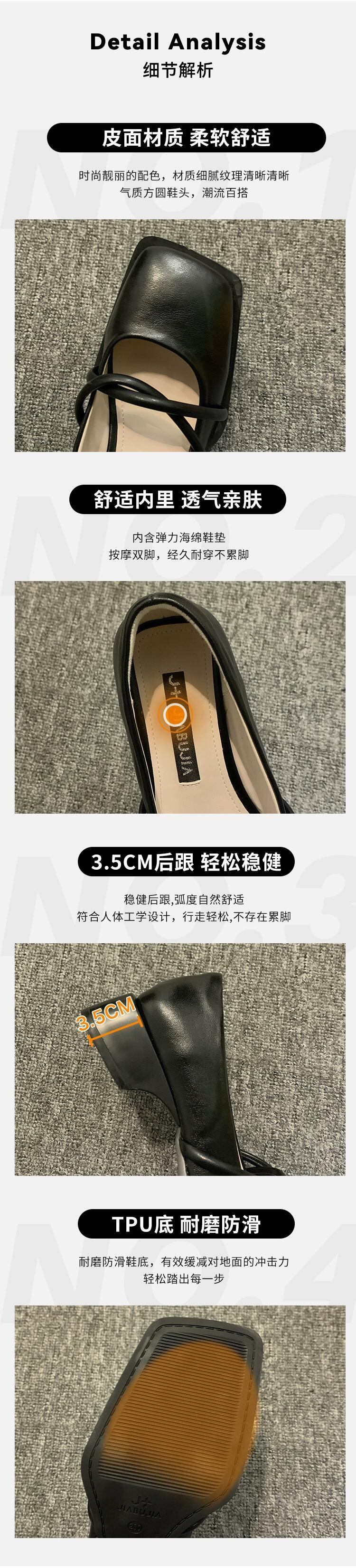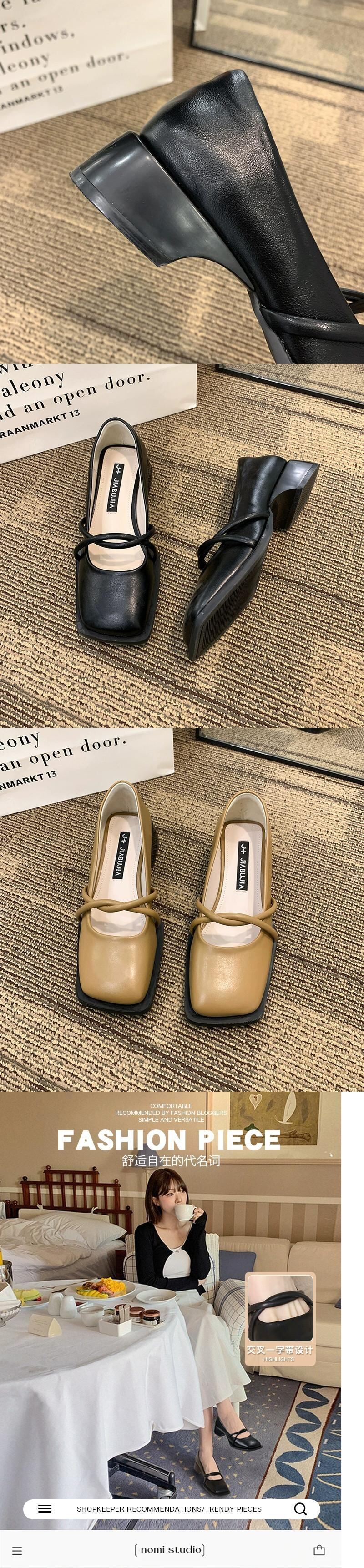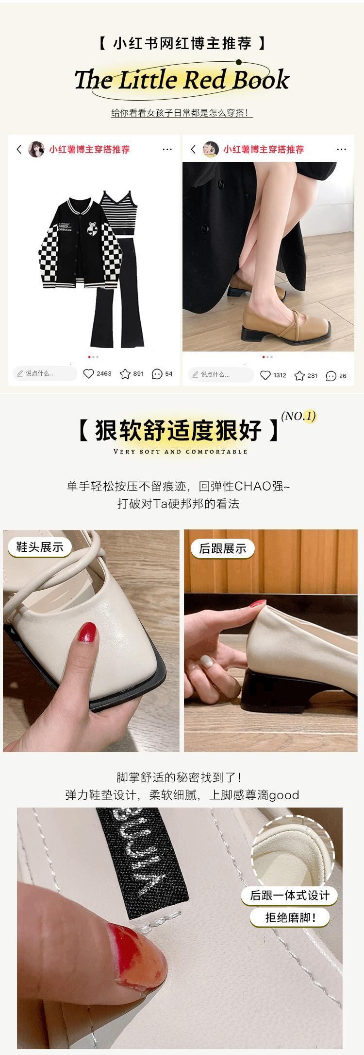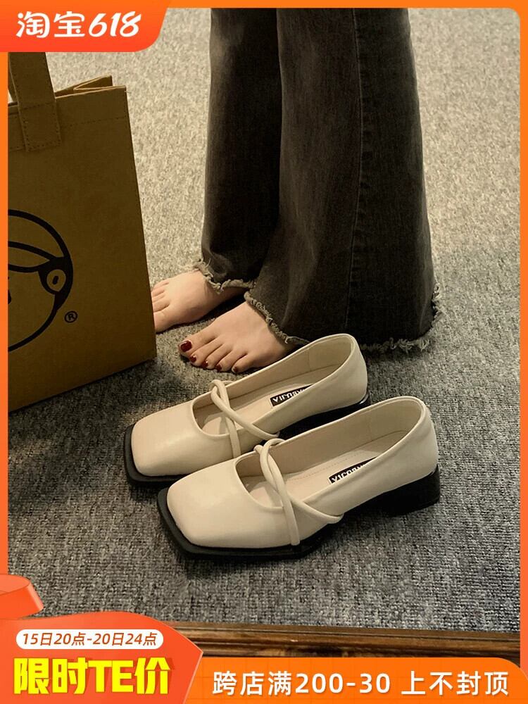 Jiabu 偽フランスシングルシューズの女性の 2023 春と秋の新浅い口スクエアトゥオールマッチ優しい太いヒールの小さな革靴スリッポン スプリング 春物 オータム 秋物 レザー スクウェア jxjxf49411255119