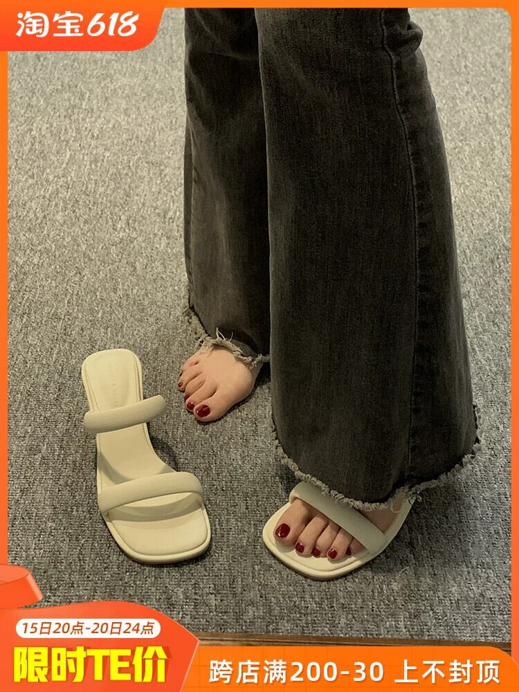 太いヒールと小さなサンダルとスリッパの女性の2023夏の新しいスタイルのアウターウェアフレンチレトロな気質のハイヒールサンダル 靴 シューズ ミュール サマー 夏物 jxjxf82387730173