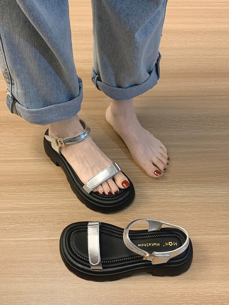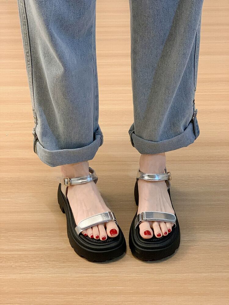 レディースサンダル 2023 夏の新ファッションレトロオールマッチ小型厚底コンタブルワンワードビーチサンダル 靴 シューズ サマー 夏物 jxjxf87337787901