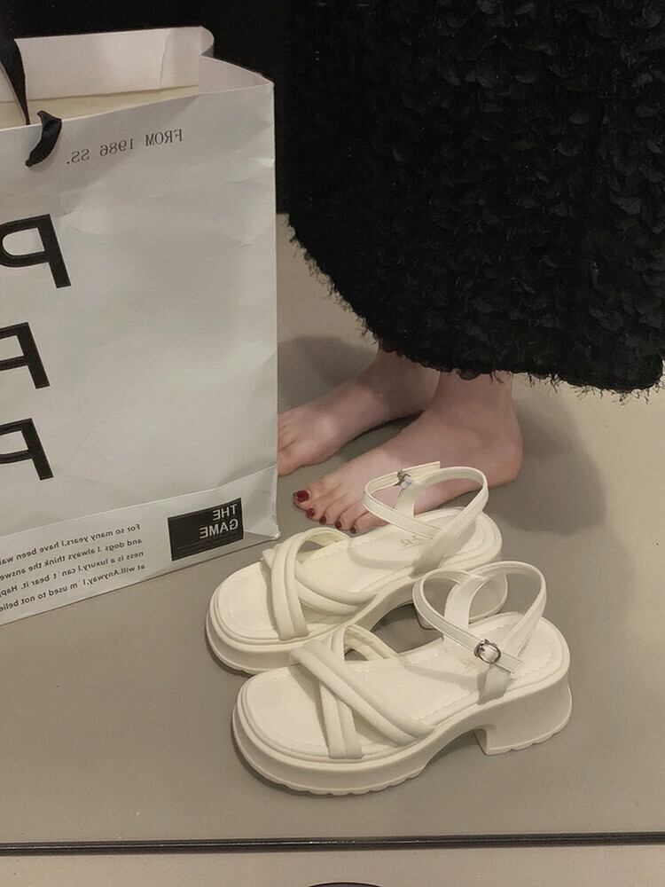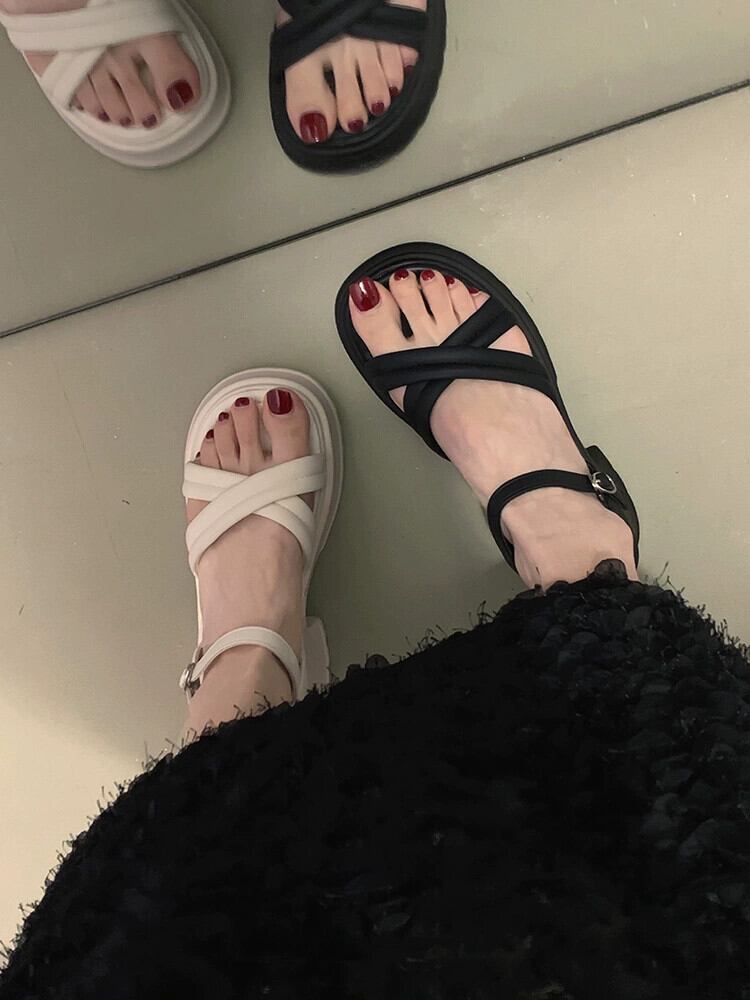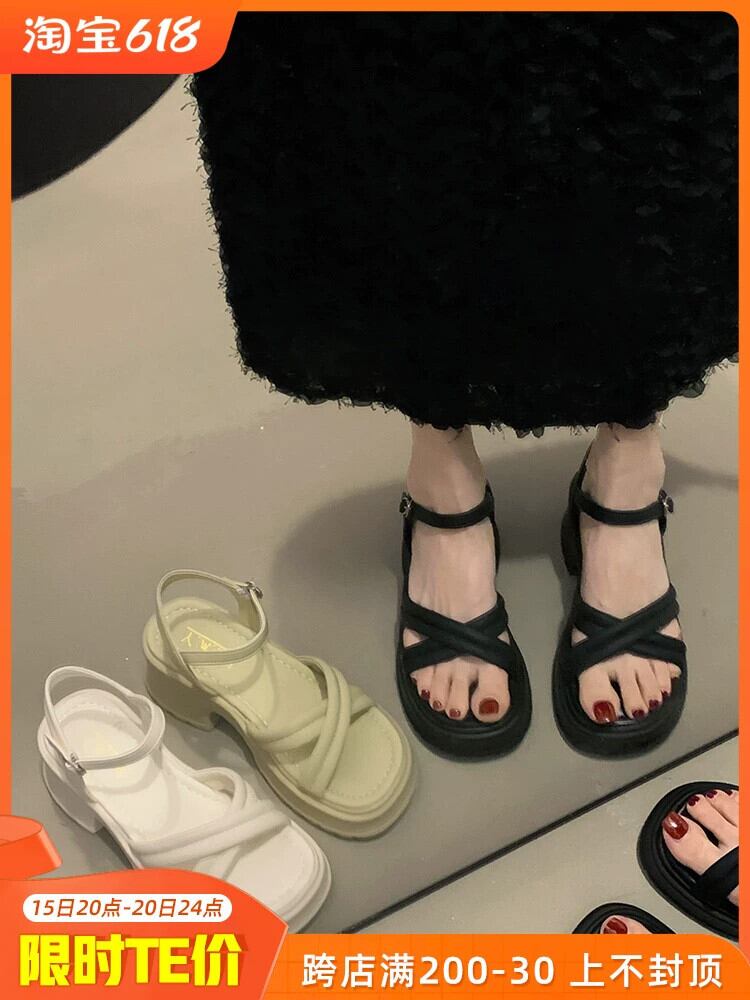 一言サンダルレディース 2023 夏の新ファッションオールマッチレトロ妖精気質快適な厚底ビーチシューズ 靴 サマー 夏物 jxjxf74827798359