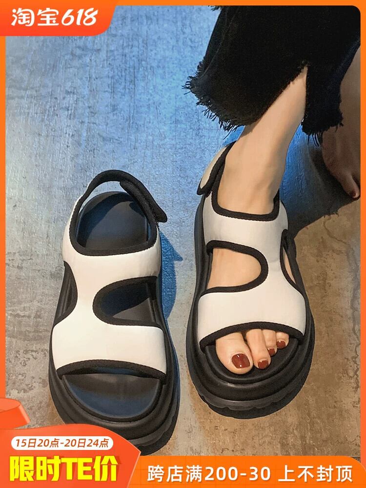 レディースサンダル 2023 夏フレンチシンプルレトロ高さマフィン厚底ビーチシューズ 靴 サマー 夏物 jxjxf62308034503