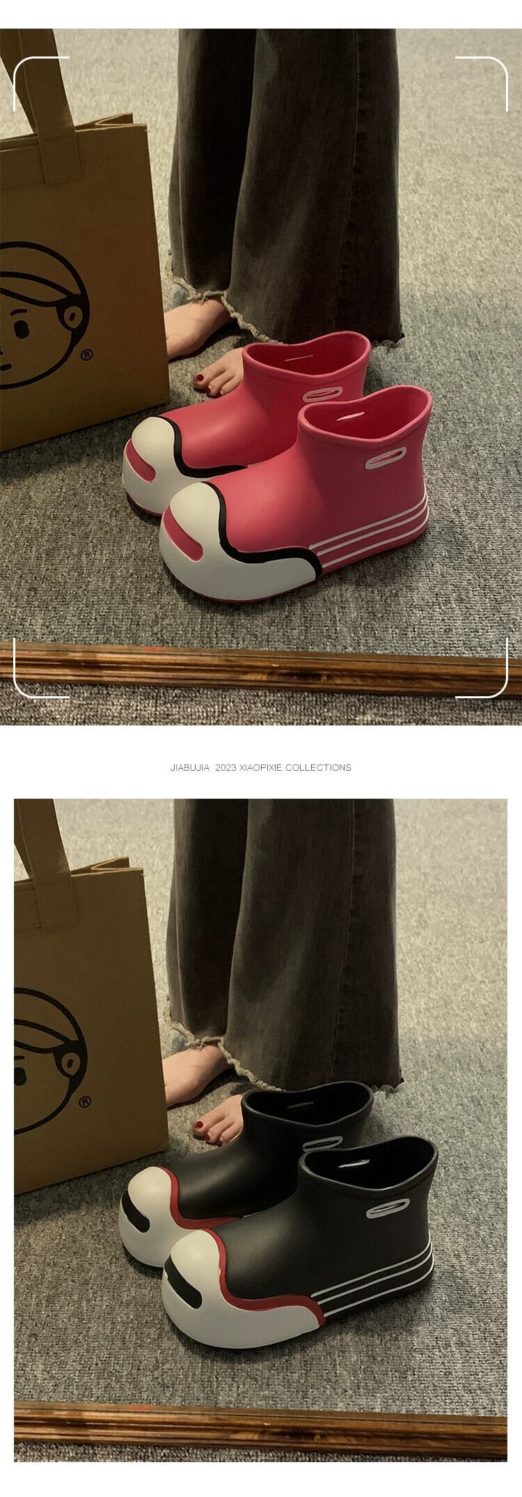 Jiabu 偽レインブーツ女性の 2023 夏の新スーパーファッションオールマッチ学生厚底滑り止め防水ショートブーツ 靴 シューズ サマー 夏物 jxjxf859153744