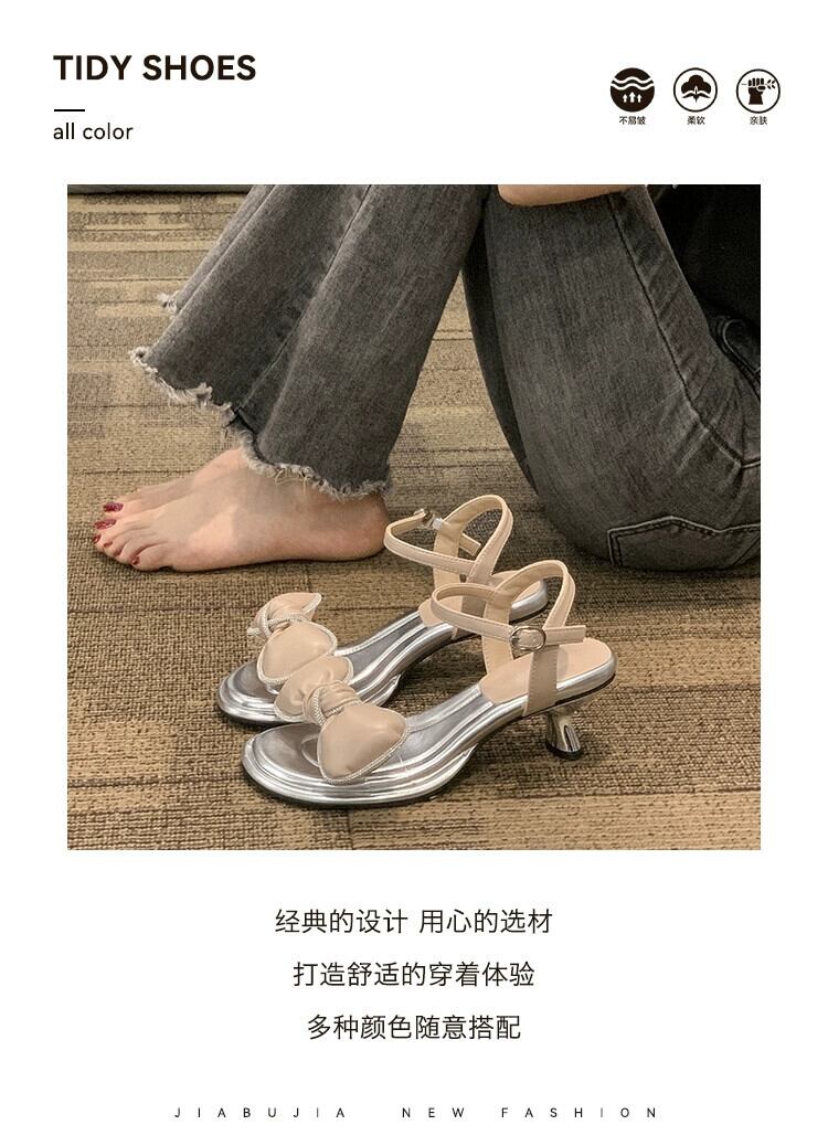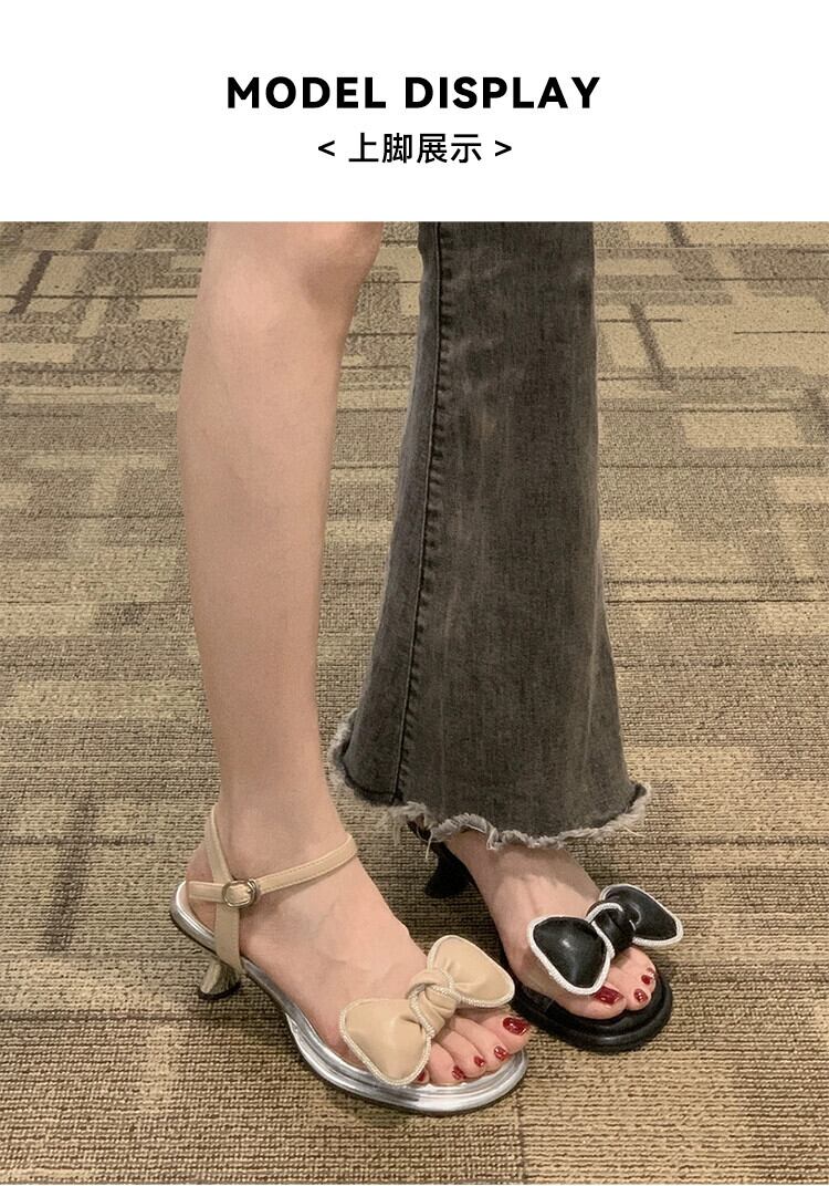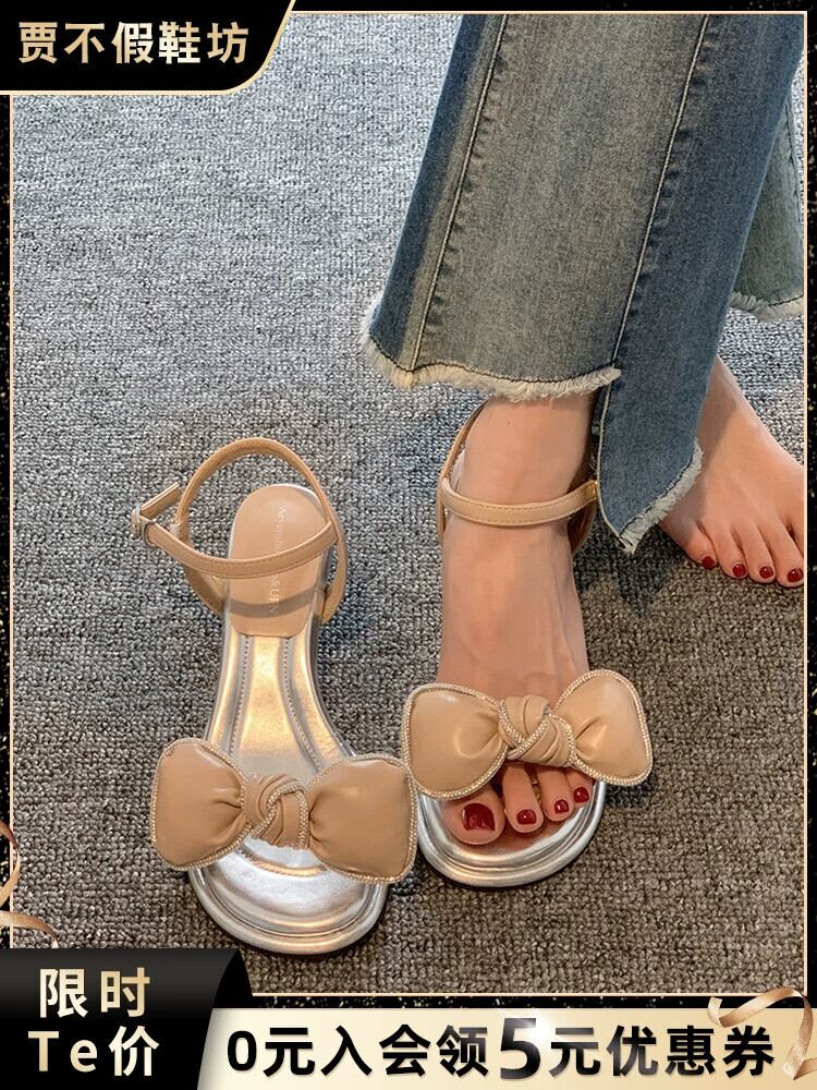 Jiabu 偽サンダル女性の 2023 夏の新ネットレッドファッションレトロな弓とスカート一言ハイヒール リボン 靴 シューズ サマー 夏物 jxjxf86848989643