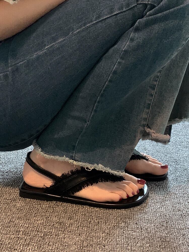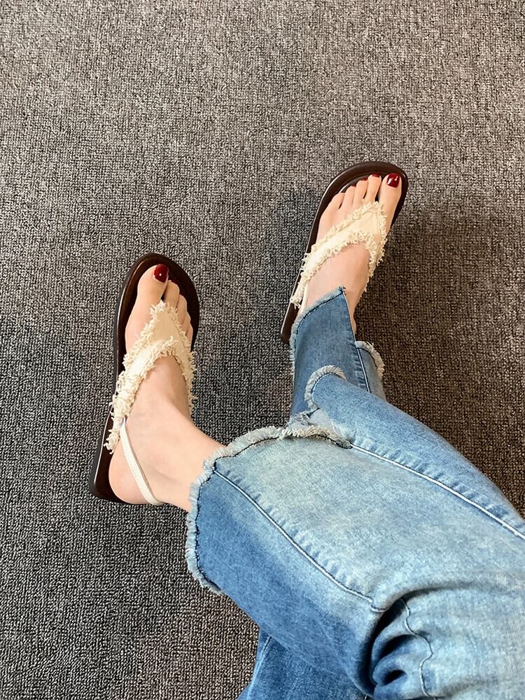 Jiabu 偽サンダル女性の 2023 夏の新スーパーレトロオールマッチ comtable 平底つま先ローマンシューズトレンド 靴 サマー 夏物 jxjxf66269125115