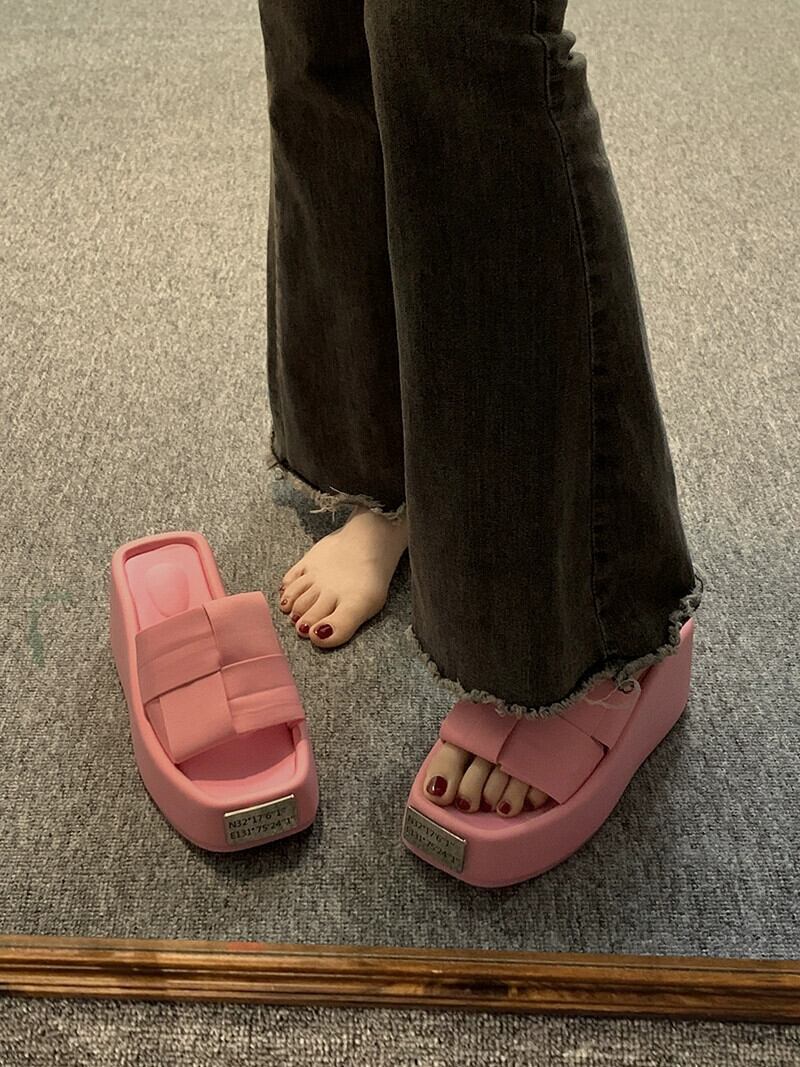 Jiabu 偽スリッパレディース 2023 夏の新スタイルのアウターファッション編組小さな厚底ビーチサンダル ミュール 靴 シューズ サマー 夏物 jxjxf18232249529