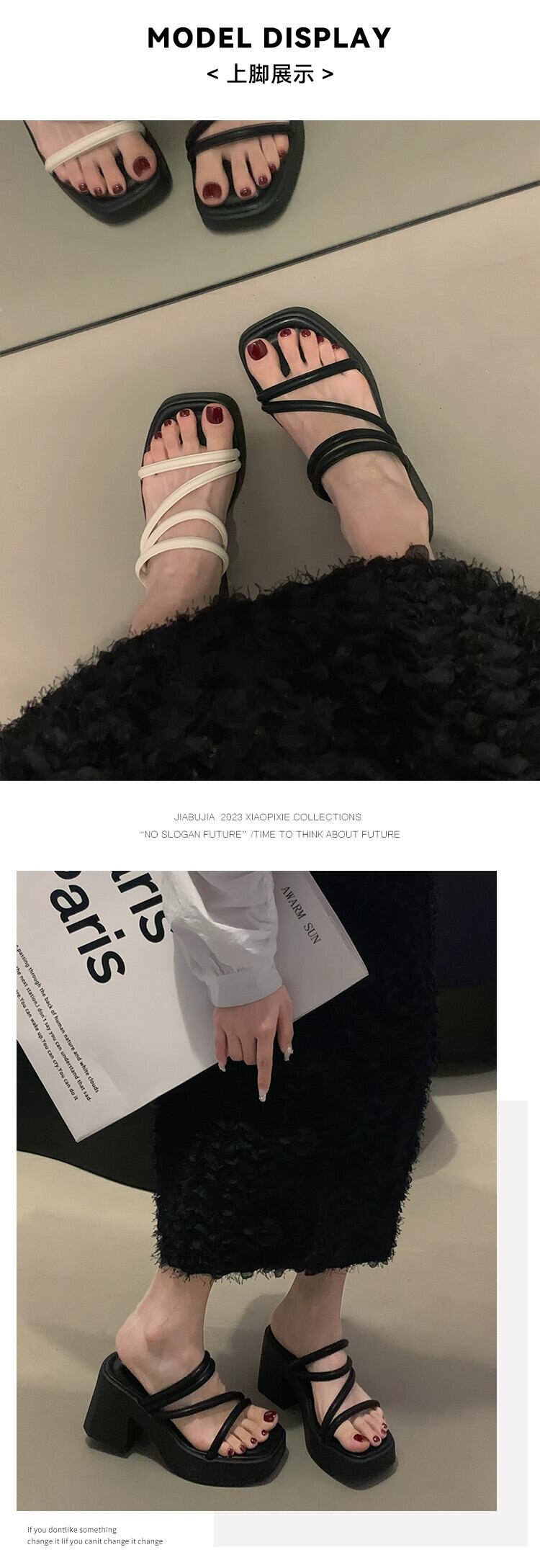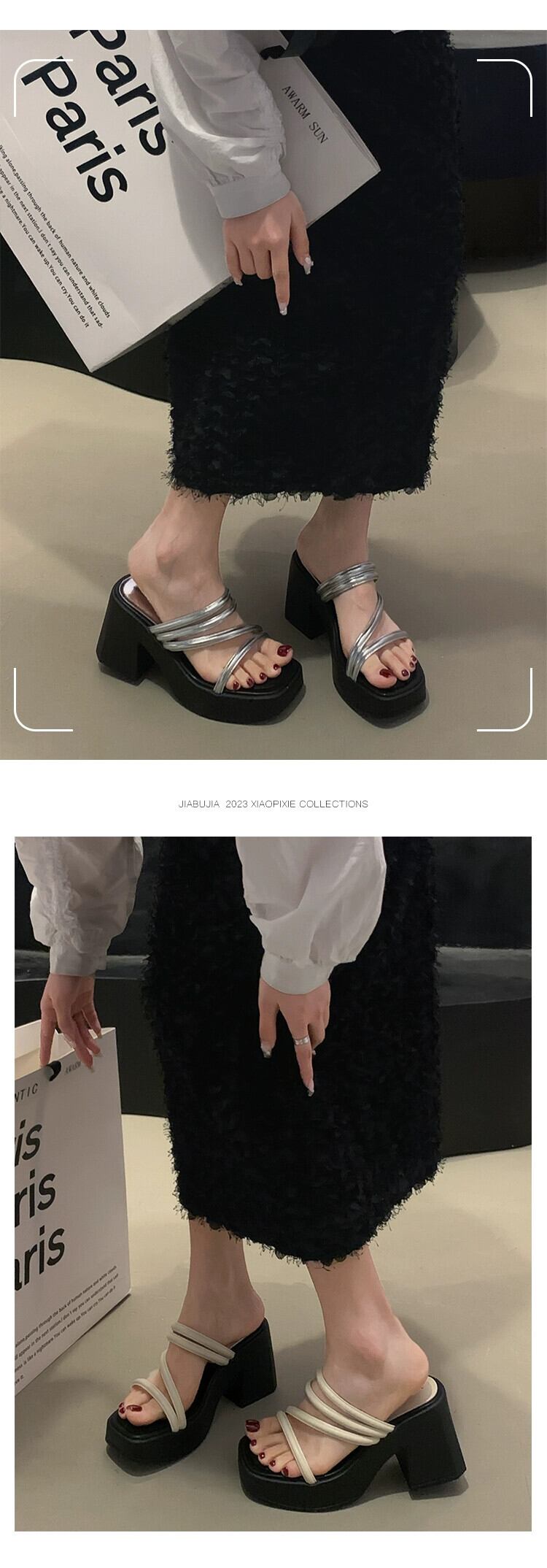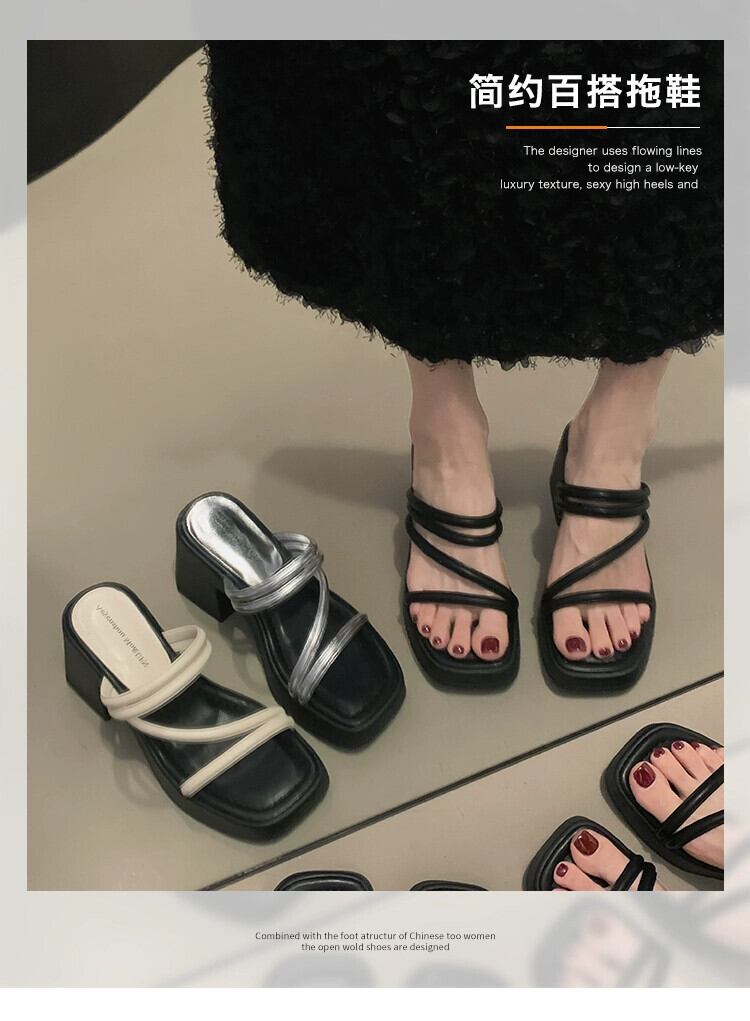 Jiabu 偽厚いかかとの一言スリッパレディース 2023 年の夏の新しいファッションフランスのレトロな気質サンダル ミュール 靴 シューズ サマー 夏物 jxjxf74375169610