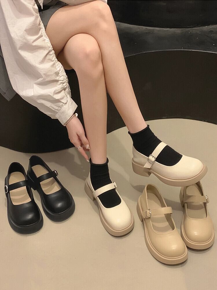 Jiabu 偽シングルシューズ女性の 2023 夏の新ファッションフレンチ eign スタイル浅い口厚いヒールメリージェーン小さな革靴トレンド サマー 夏物 レザー jxjxf86214345245
