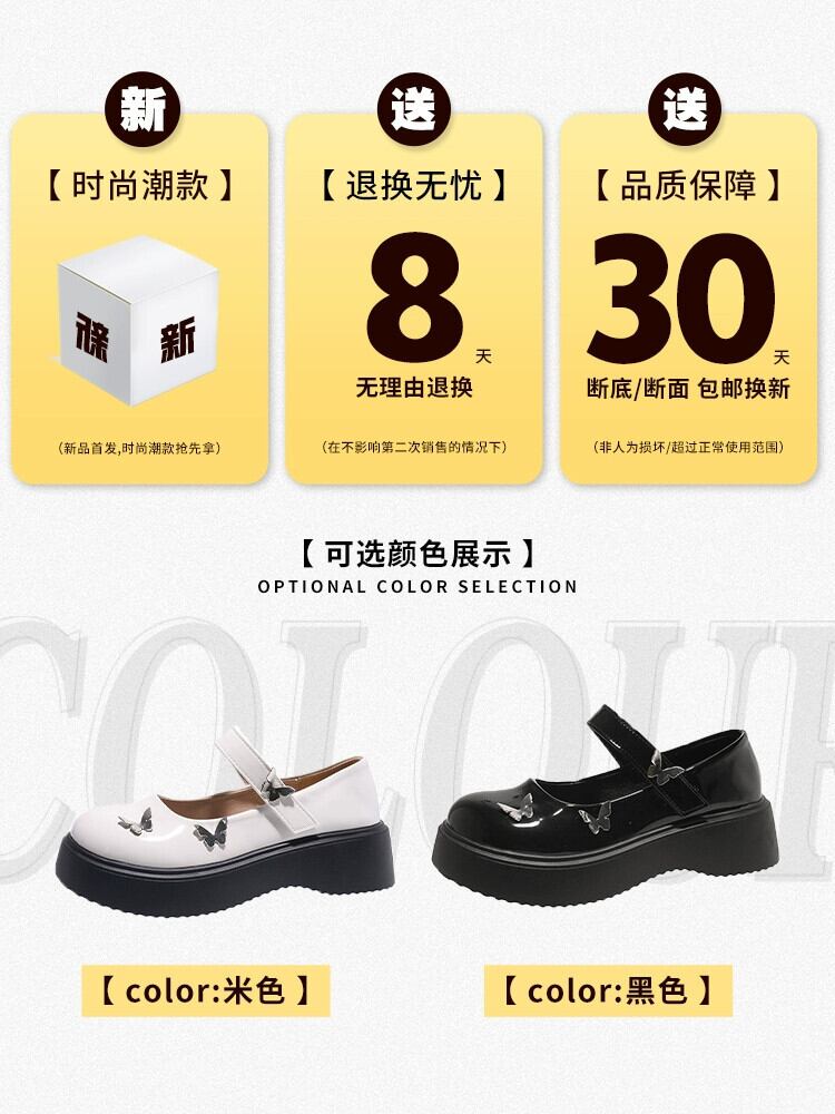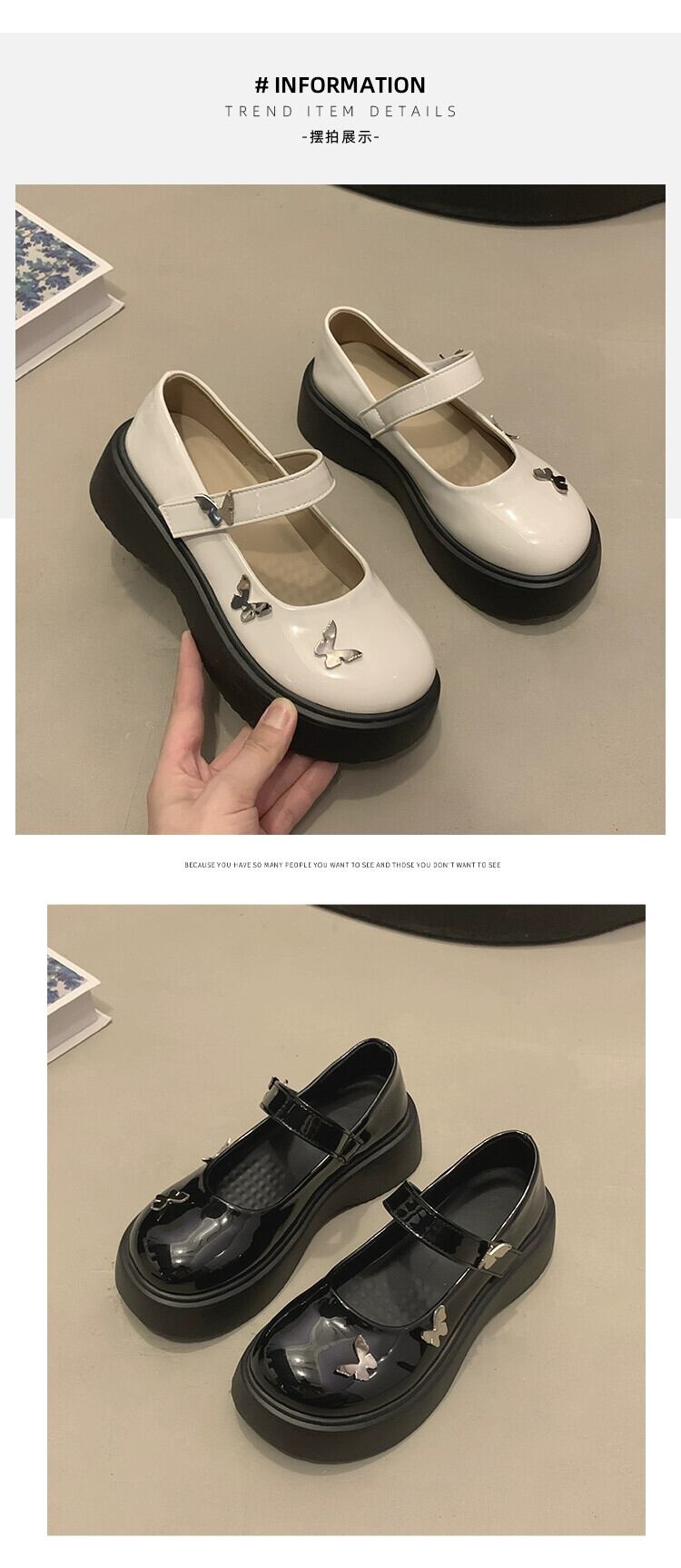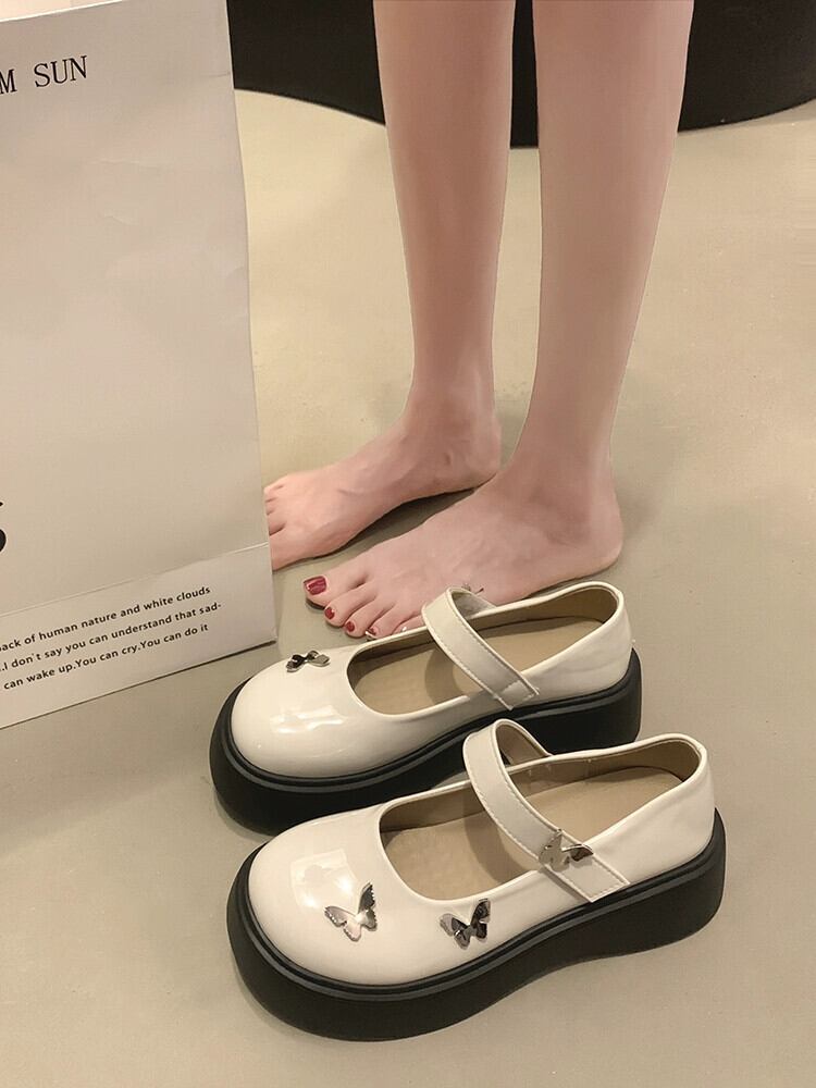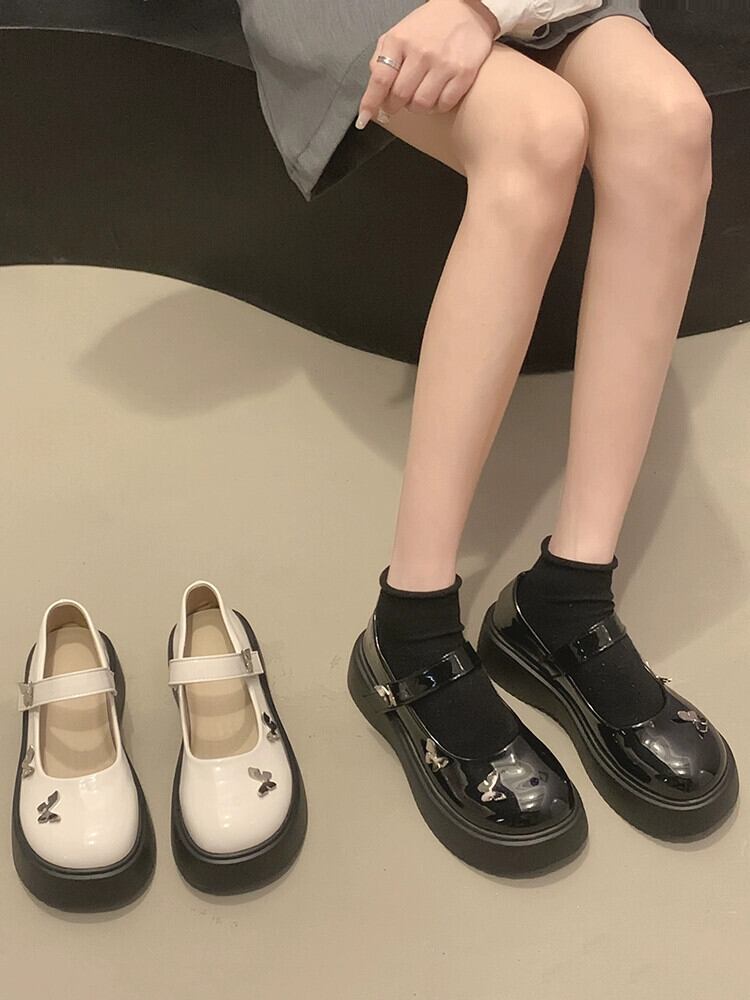 ese 小さな革の靴の女性の 2023 夏の新ファッション金属蝶小さな厚底甘いクールなメリージェーンの靴 シューズ 大人ガーリー スウィート キュート カジュアル サマー 夏物 レザー jxjxf67039935399