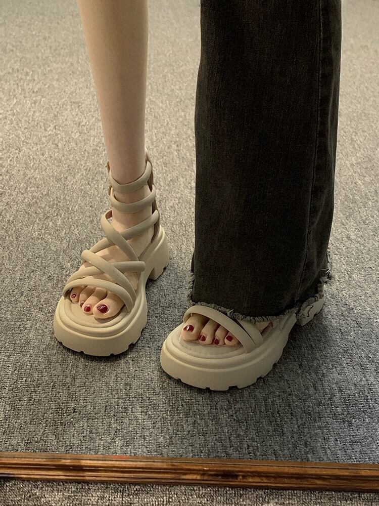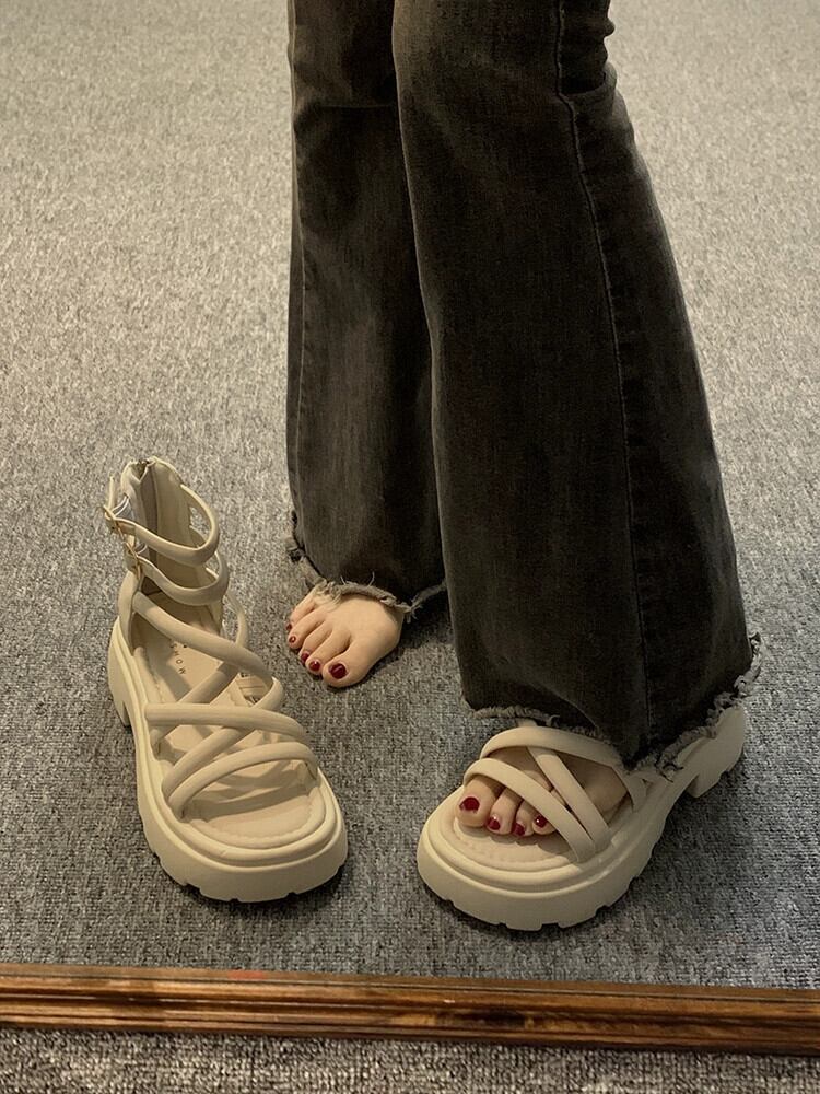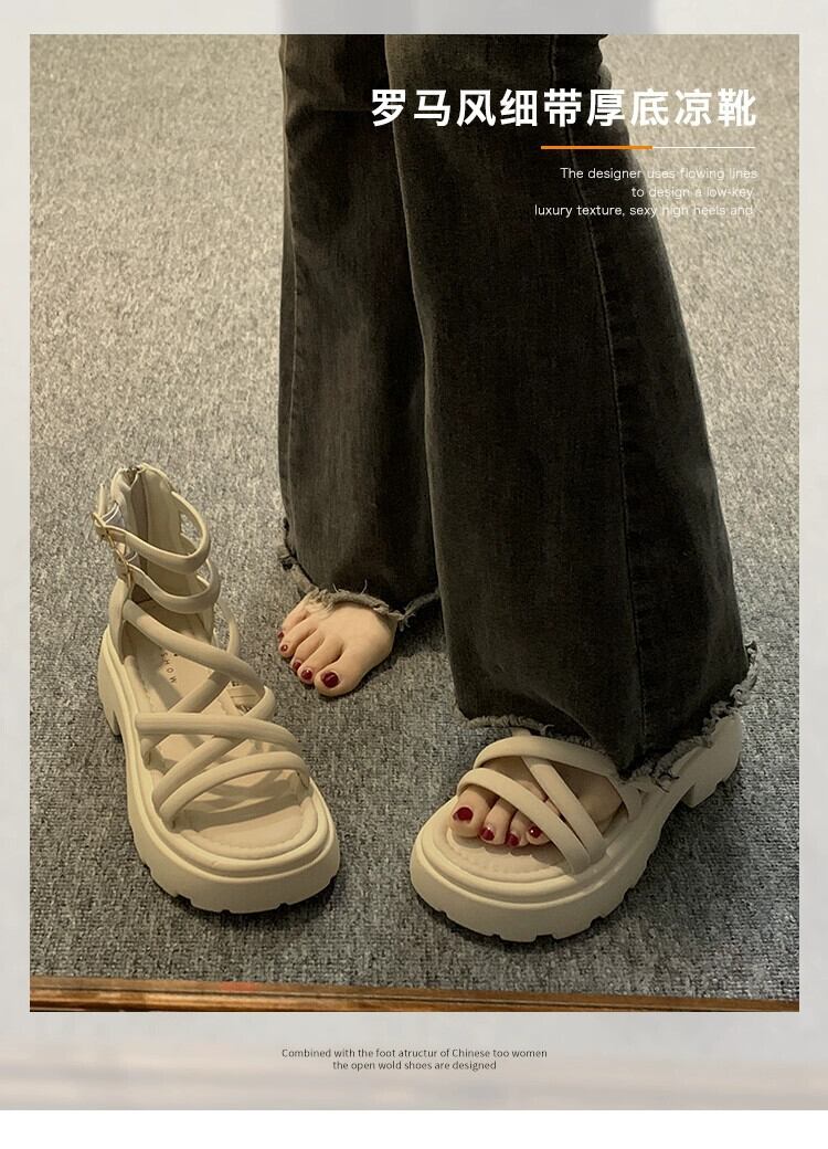 ローマサンダル女性の 2023 夏の新ネットレッドスーパーレトロオールマッチ小型厚底アインスタイルビーチシューズ 靴 サマー 夏物 jxjxf80763985726