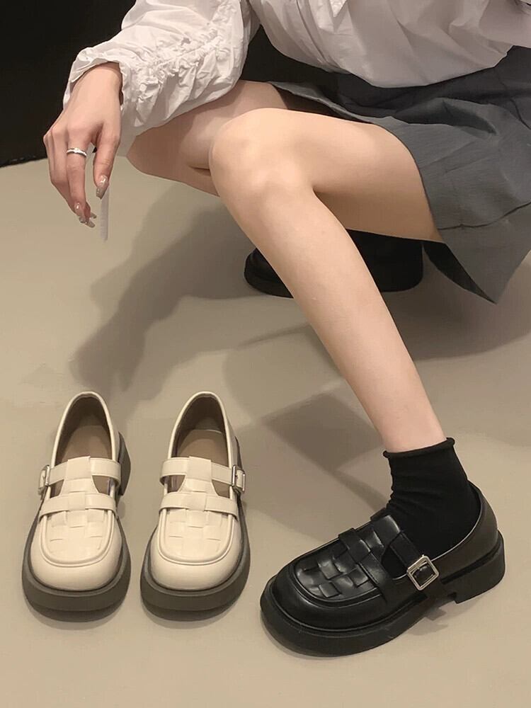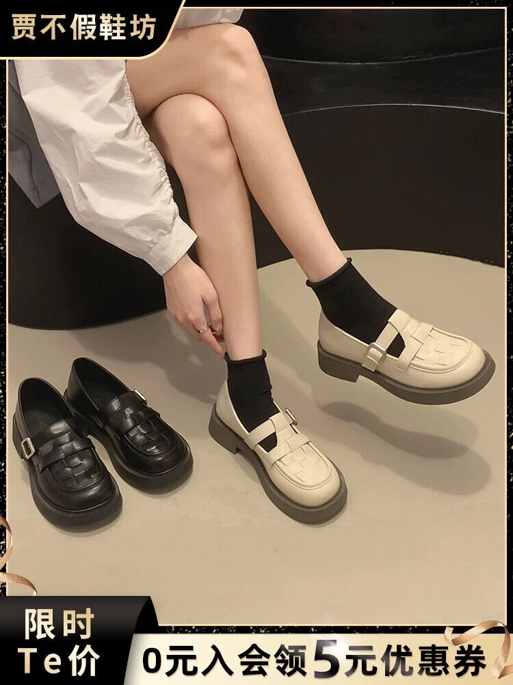 シングルシューズの女性の 2023 春の新スーパーファッションレトロ eign スタイル織り厚いヒールノンスリップ ese 小さな革靴 スプリング 春物 レザー jxjxf1021541873