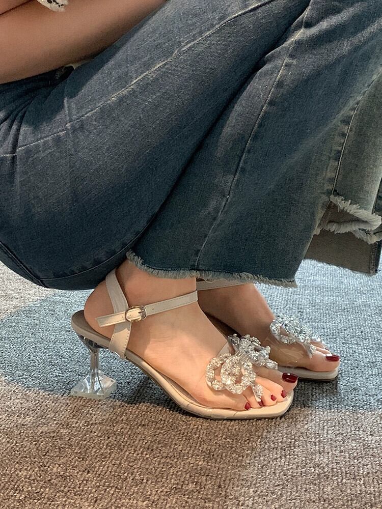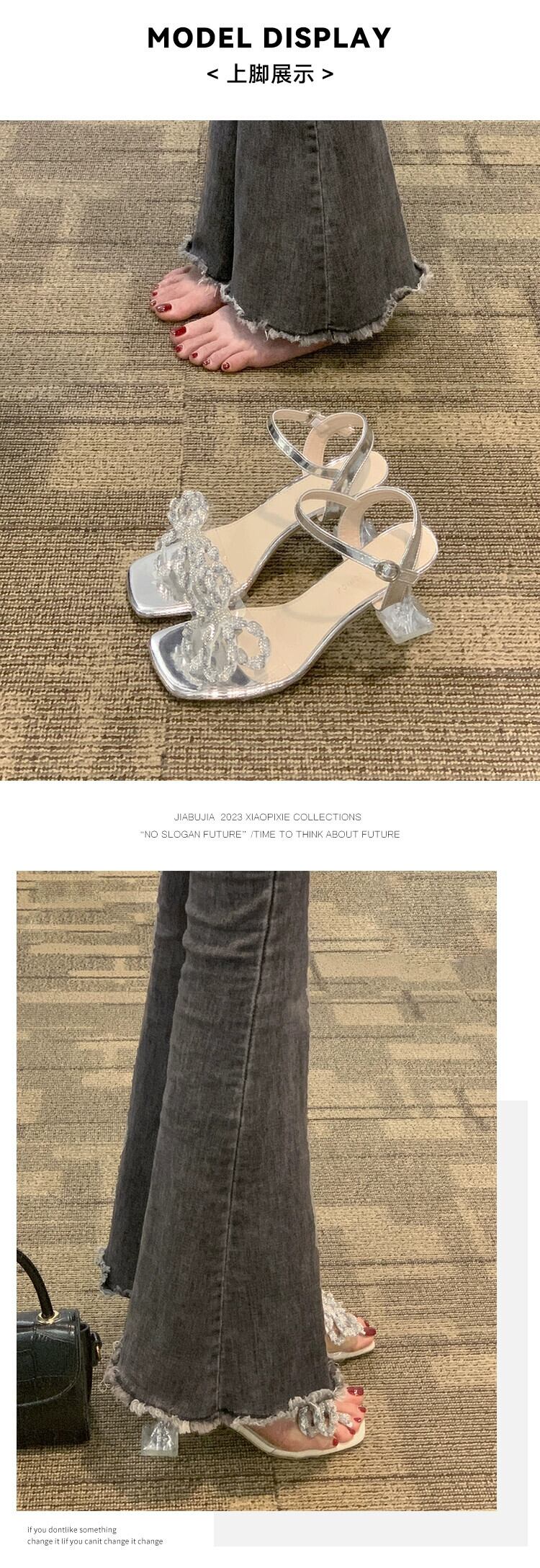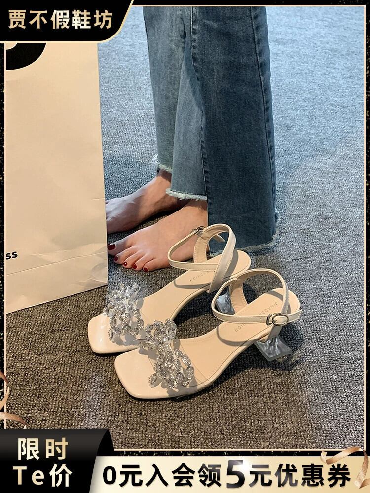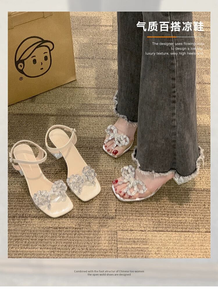 Jiabu 偽ネット赤ピンヒールサンダル女性の 2023 夏の新しい気質ラインストーン妖精の弓ハイヒールの靴潮 シューズ レッド リボン サマー 夏物 jxjxf96041629739