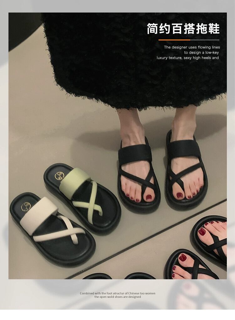 つま先スリッパのセットの女性 2023 夏外出新しいファッションシンプルなレトロな comtable ソフト底滑り止めカジュアルサンダル ミュール 靴 シューズ サマー 夏物 jxjxf20028773594