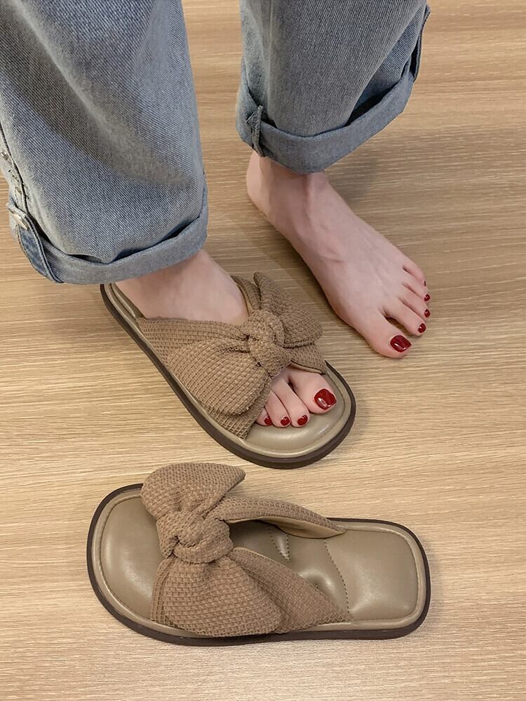 ネットセレブスリッパレディースアウター 2023 夏の新ファッションオールマッチレトロかわいいちょう結び厚底ビーチサンダル リボン ミュール 靴 シューズ 大人ガーリー スウィート キュート カジュアル サマー 夏物 jxjxf29231108540