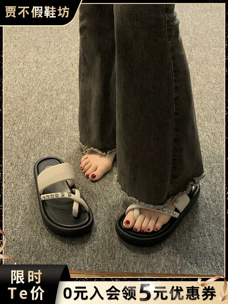 つま先スリッパのセットレディースアウターウェア 2023 夏の新しいネットレッドスーパーレトロラインストーン厚底コンタブルサンダルとスリッパトレンド ミュール 靴 シューズ サマー 夏物 jxjxf1850963332