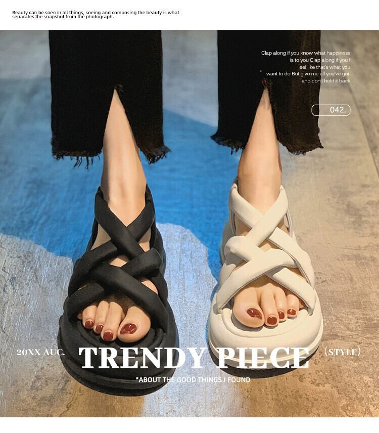 ローマンサンダル女性の 2023 夏の新スーパーファッションレトロ織り中空厚底カジュアルビーチシューズ潮 靴 サマー 夏物 jxjxf63106875779