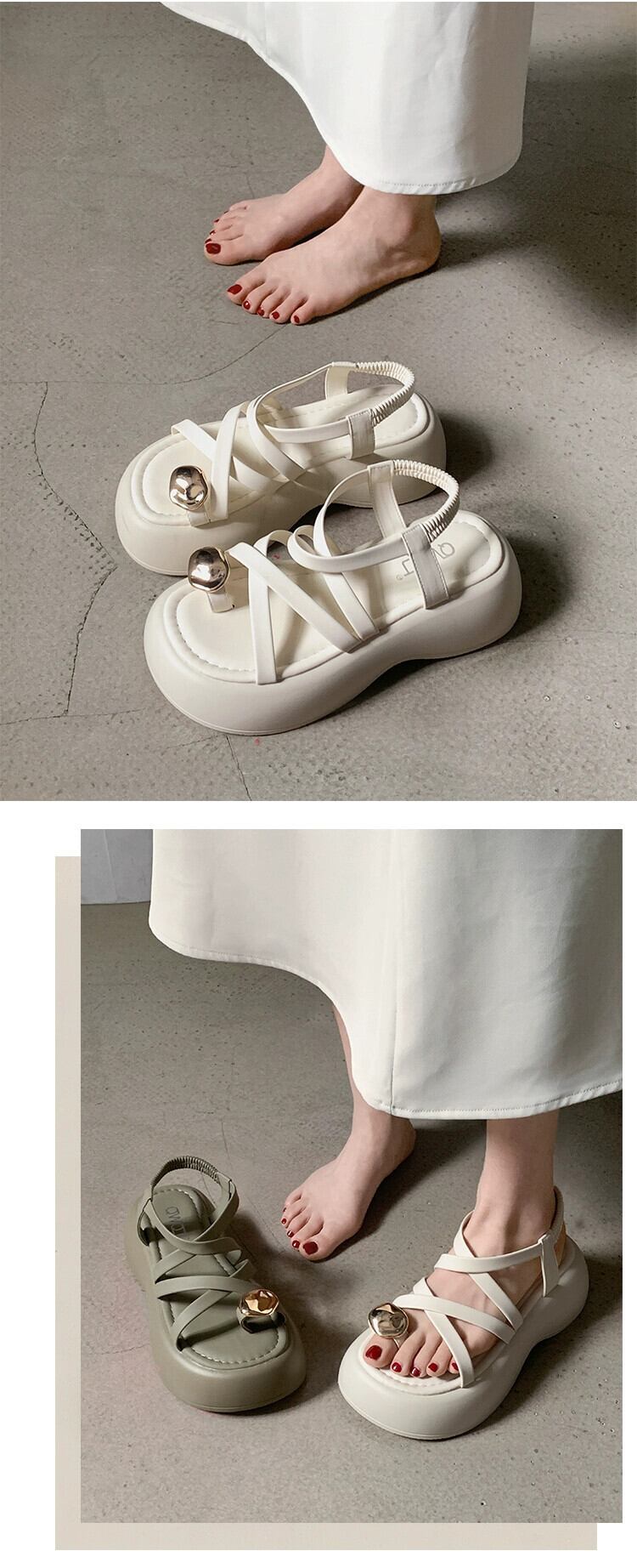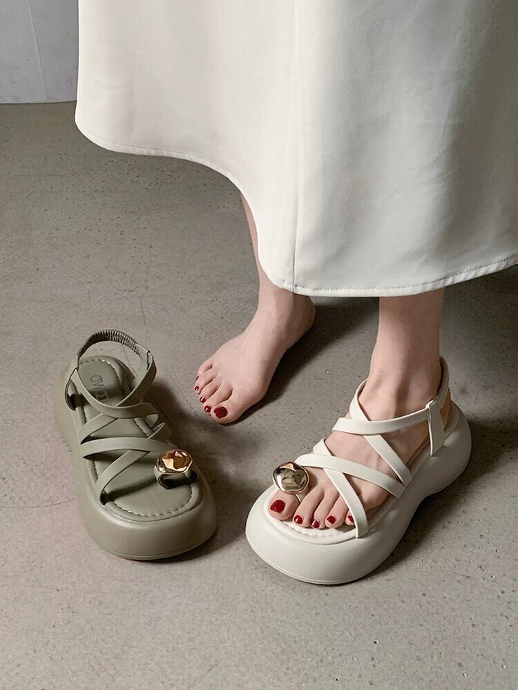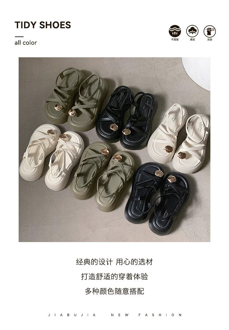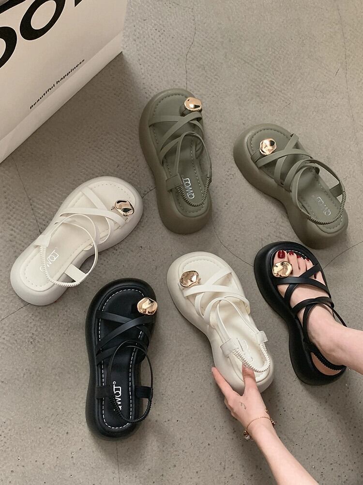 ローマンサンダル女性の 2023 夏の新ファッションオールマッチ小さな厚底アインスタイルメタルトゥビーチシューズ 靴 サマー 夏物 jxjxf12779567150
