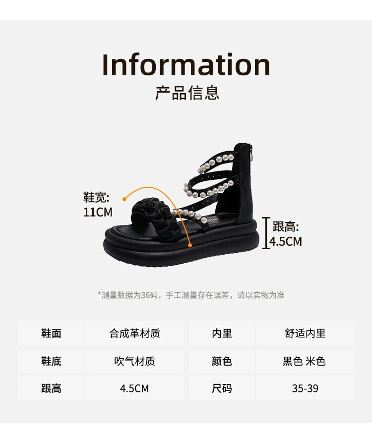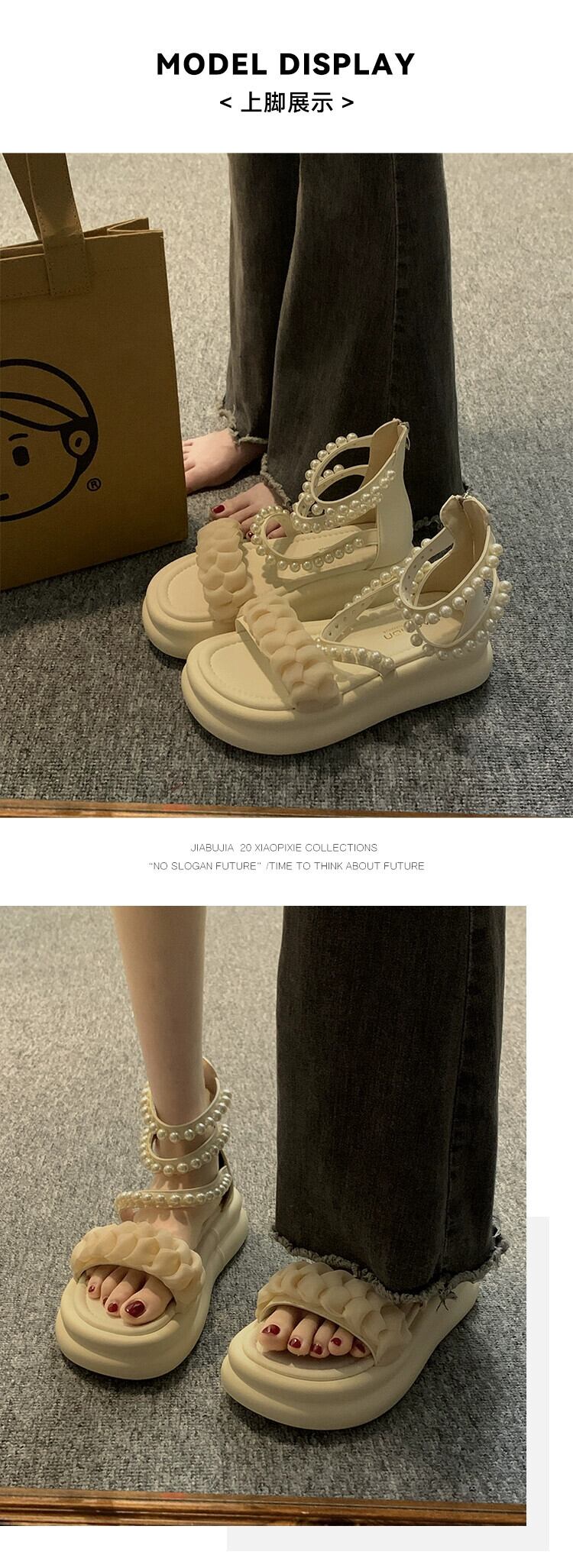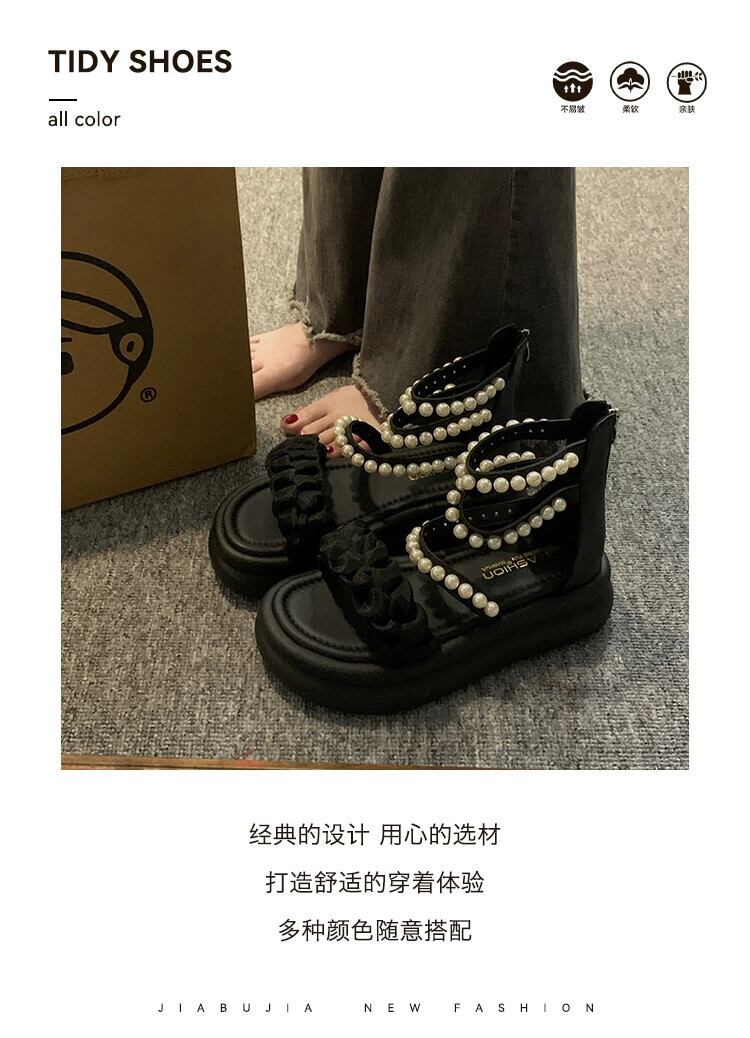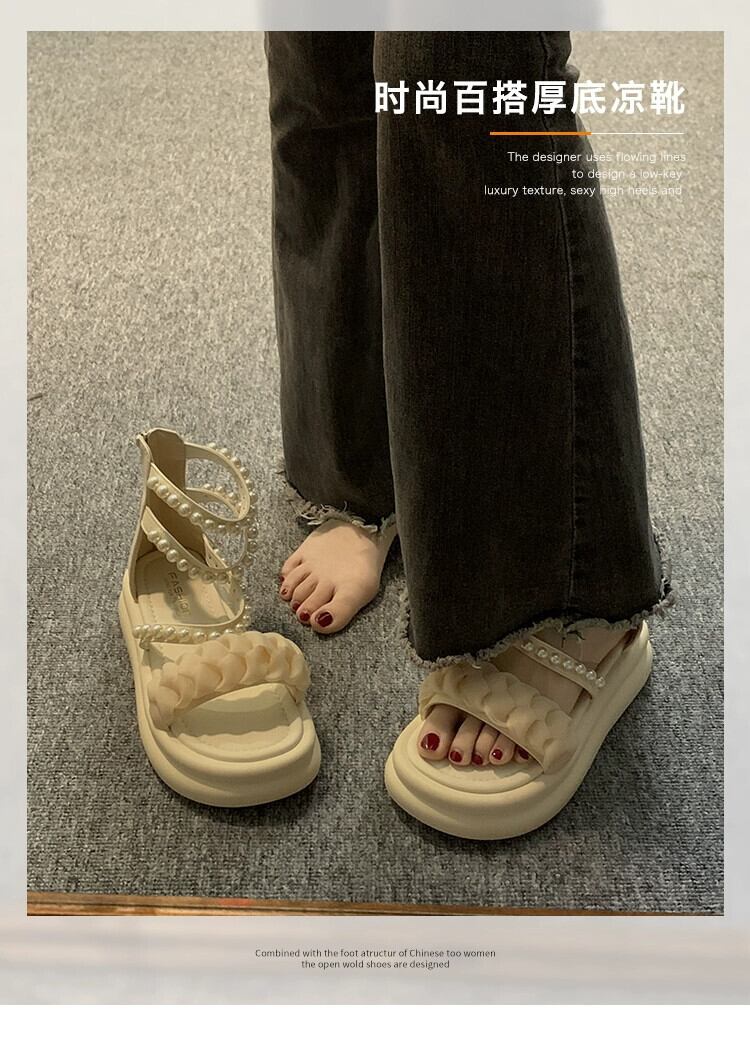 ローマサンダル女性の 2023 夏の新ファッションパール小さな厚底コンタブル妖精風ビーチシューズ潮 靴 サマー 夏物 真珠 jxjxf60654982510