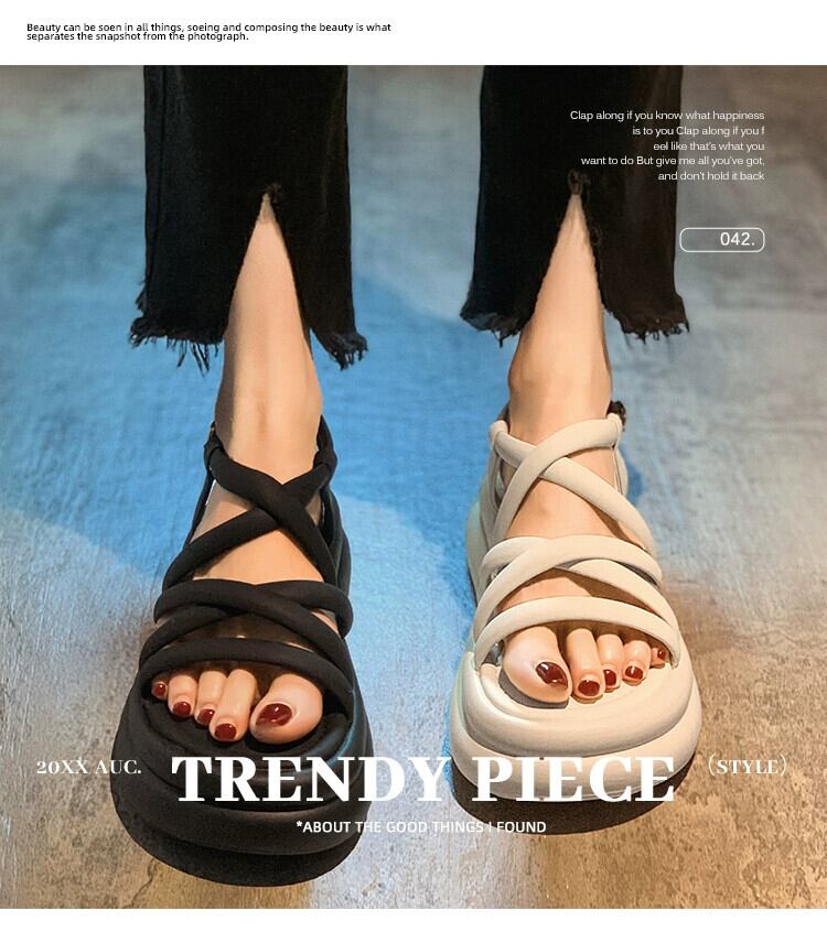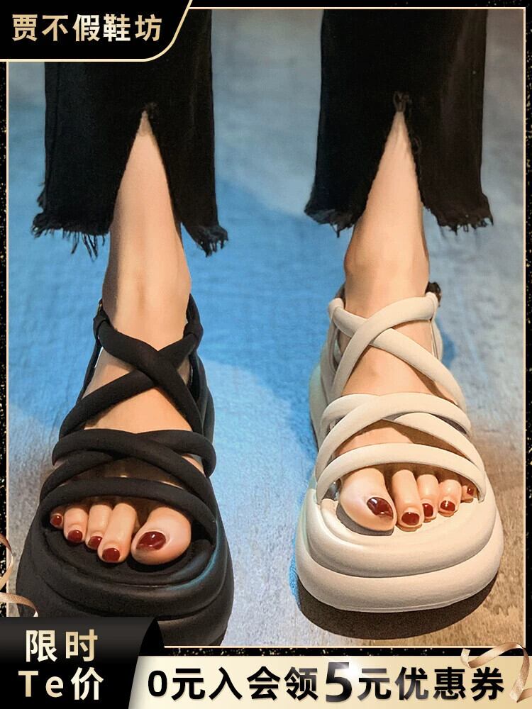 Jiabu 偽の女性のサンダル 2023 夏の新ファッションオールマッチ小さな厚底レトロカジュアルローマの靴 シューズ サマー 夏物 jxjxf54841170765