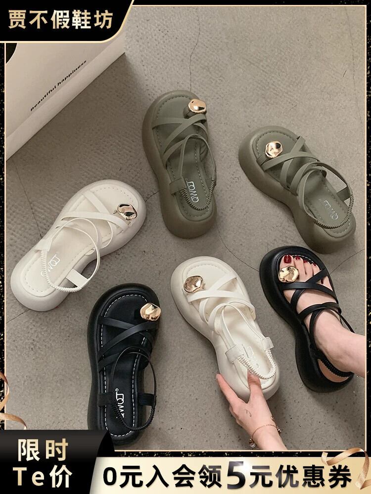 インターネット有名人のローマンシューズの女性の 2023 夏の新しいファッション中空通気性織りレトロ厚底カジュアルサンダルトレンド 靴 サマー 夏物 jxjxf82038359548