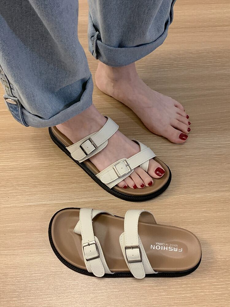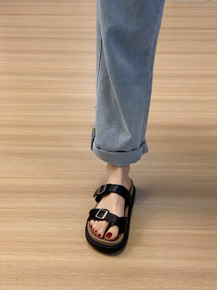 お出かけスリッパ レディース 2023 夏新作 レトロ ベルトバックル シンプル オールマッチ 厚底 カジュアル サンダル 靴 シューズ サマー 夏物 ハーネス jxjxf84153789873