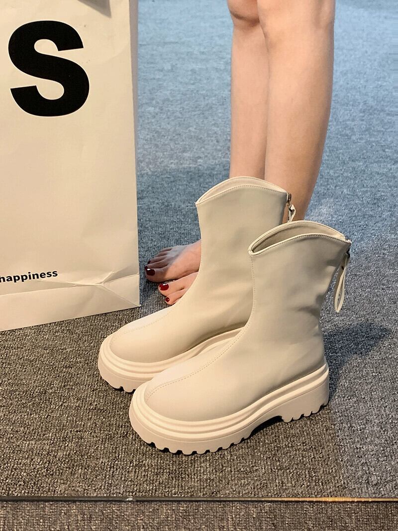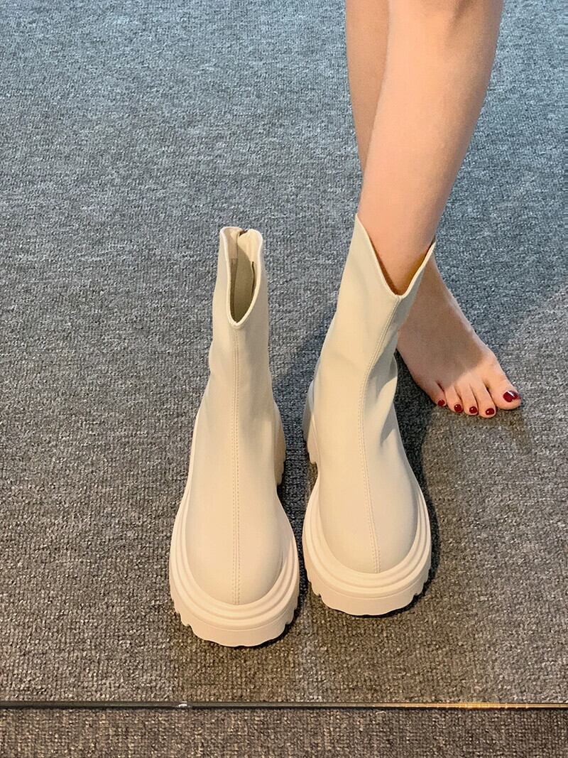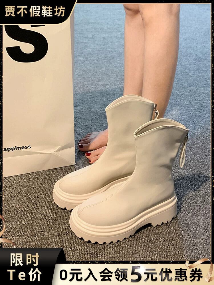 Jiabu 偽英国スタイルショートブーツレディース 2023 夏の新ファッションオールマッチ薄型レトロ厚底薄型ブーツ潮 靴 シューズ サマー 夏物 jxjxf52037470426