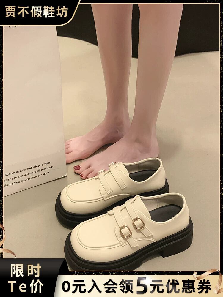 Jiabu 偽スタイルシングルシューズ女性の 2023 夏の新 eign スタイルレトロベルトバックルフレンチ厚いヒール小さな革靴トレンド サマー 夏物 レザー ハーネス jxjxf5366367978