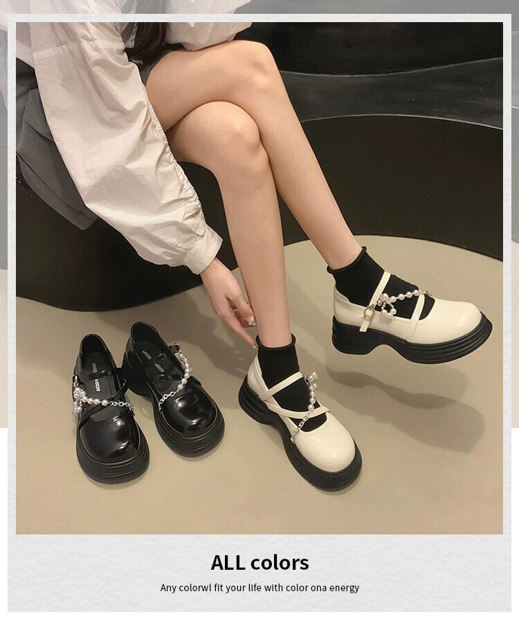 Jiabu 偽シングルシューズ女性の 2023 夏の新ファッションレトロパール厚底アインスタイルメリージェーンシューズトレンド 靴 サマー 夏物 真珠 jxjxf45326752137