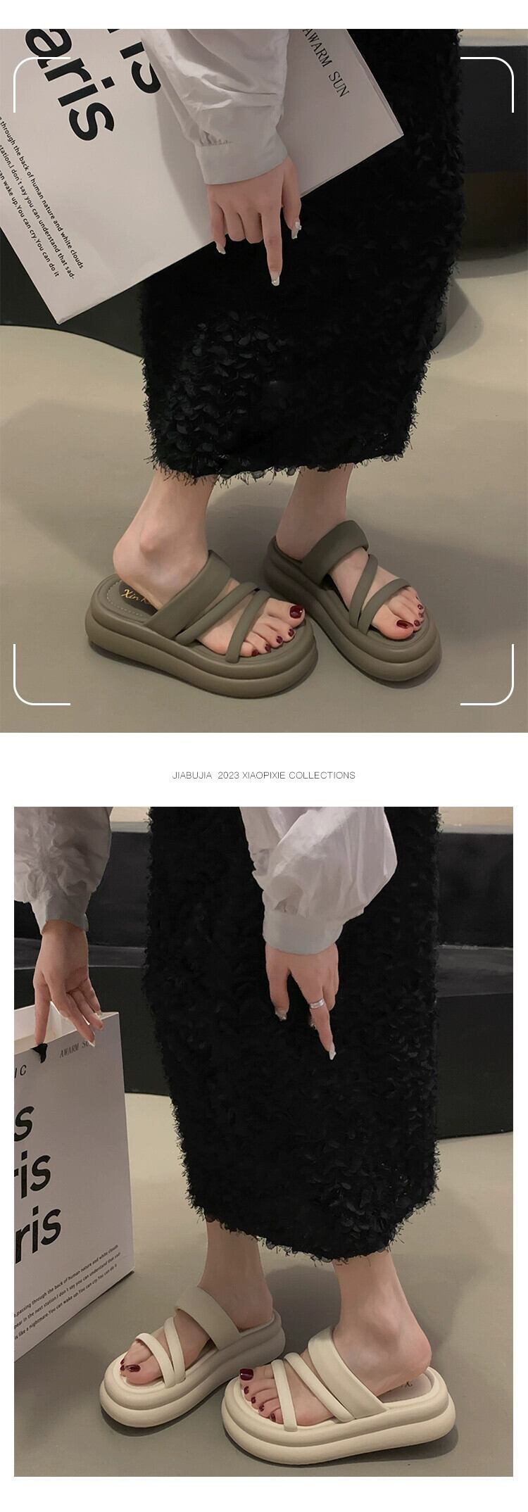Jiabu 偽女性のスリッパ屋外着用 2023 夏の新しい小さなレトロな comtable 厚底ビーチサンダルとスリッパ ミュール 靴 シューズ サマー 夏物 jxjxf25278025475