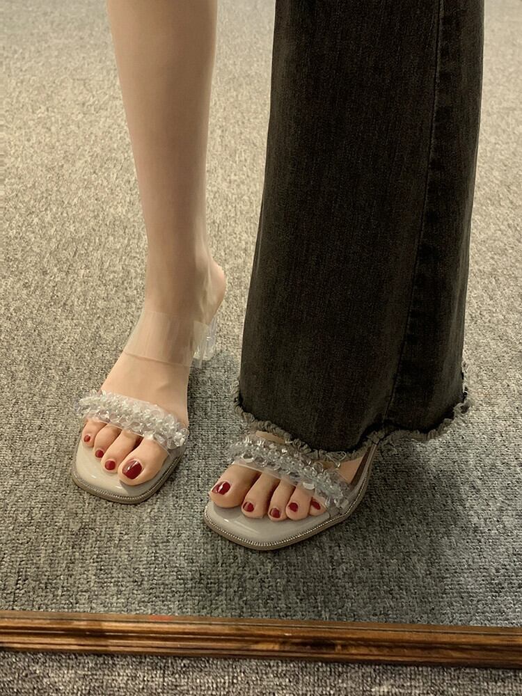 ネットセレブスリッパレディースアウター2023夏の新ファッションパールスモールハイヒールフェアリースタイルスリッポントレンド 靴 シューズ ミュール サマー 夏物 真珠 jxjxf98193851915