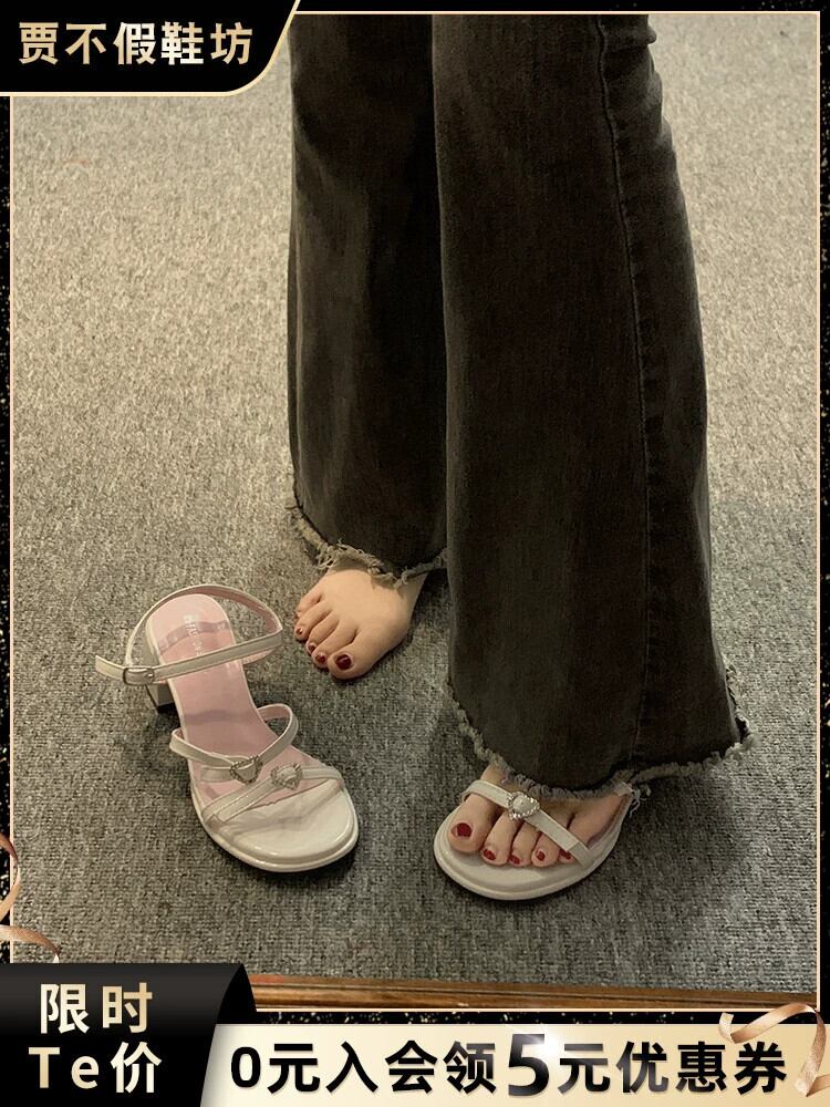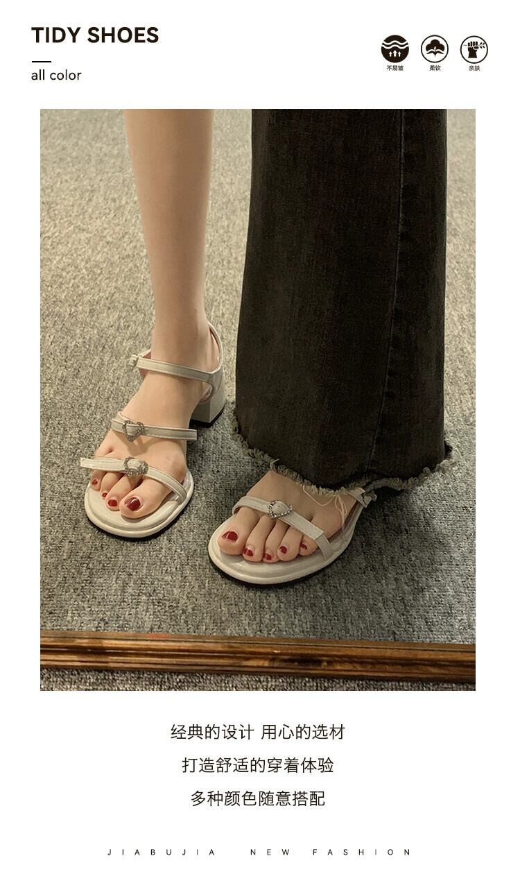 Jiabu 偽ネットレッドサンダル女性の 2023 夏の新ファッション eign スタイルラインストーン妖精スタイル一言ハイヒール 靴 シューズ サマー 夏物 jxjxf93253500994