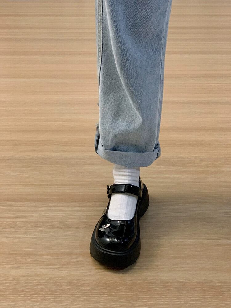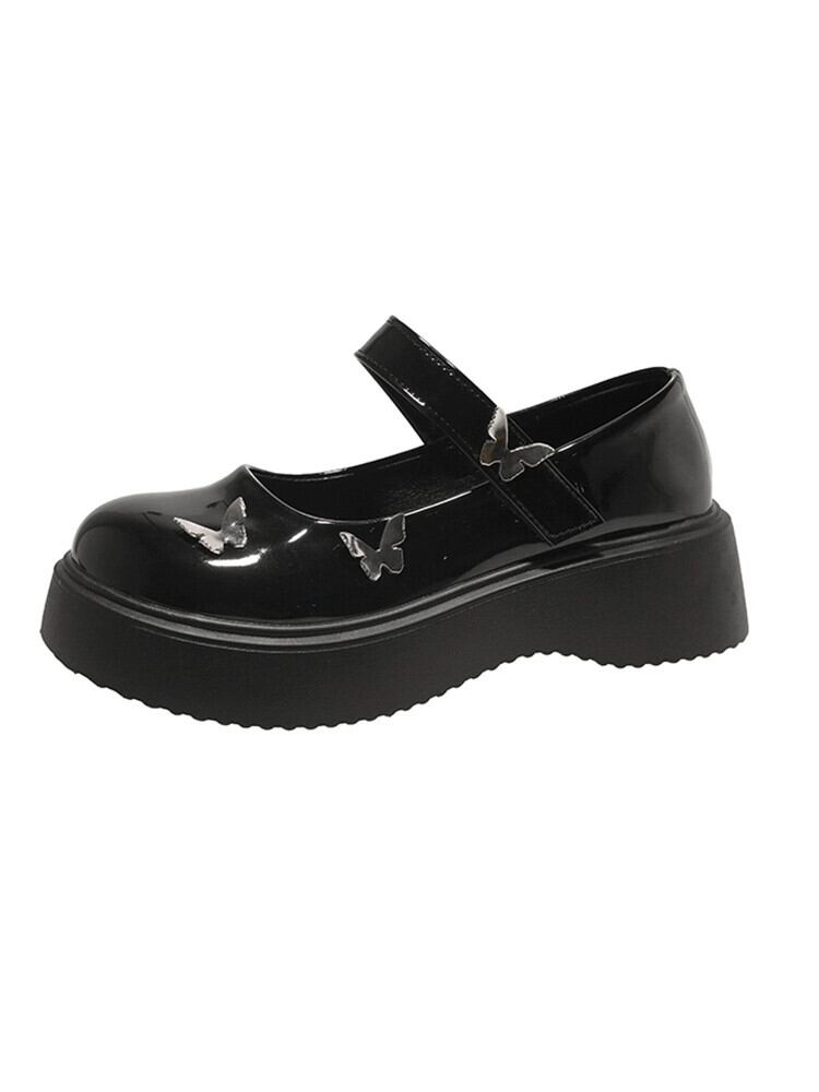 シングルシューズの女性の 2023 夏の新フレンチスタイルのメタルバタフライレトロ厚底メリージェーンレザーシューズ 靴 サマー 夏物 jxjxf32753496471