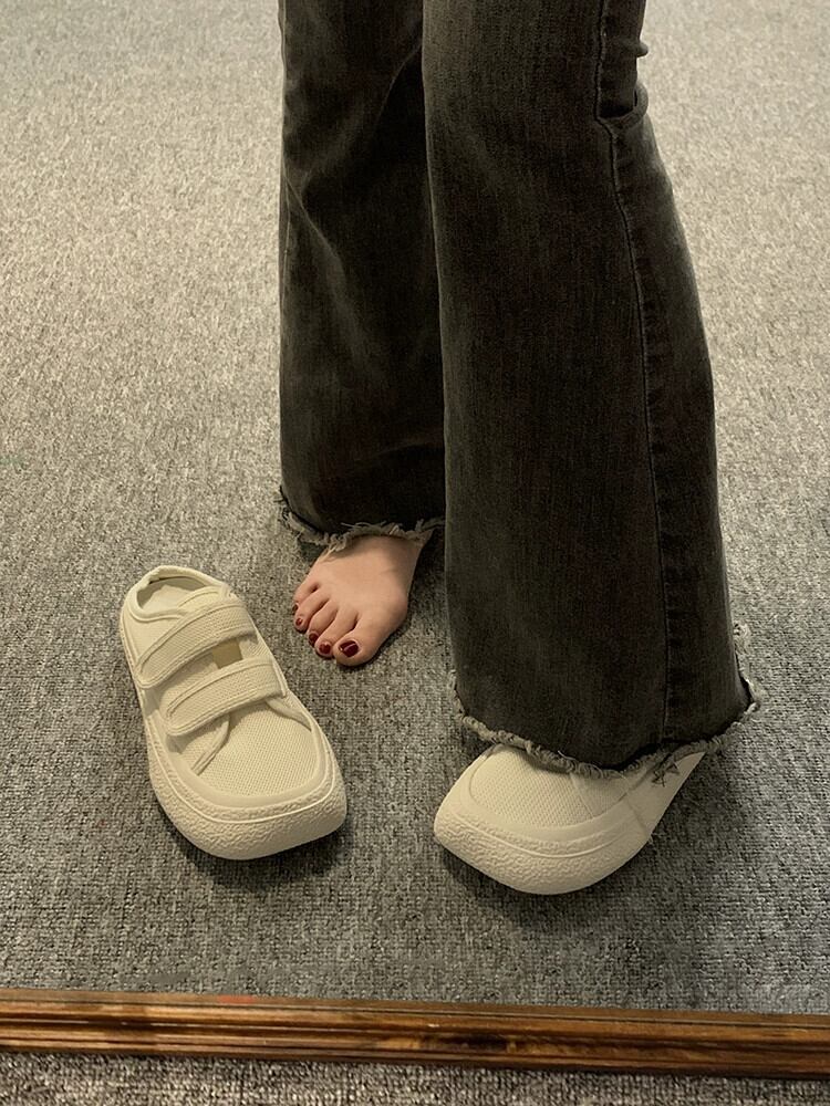 Baotou セミスリッパ女性の 2023 夏の新ファッションベルクロ comtable 厚底カジュアルスクエアトゥサンダルとスリッパトレンド ミュール 靴 シューズ サマー 夏物 スクウェア jxjxf47352273971