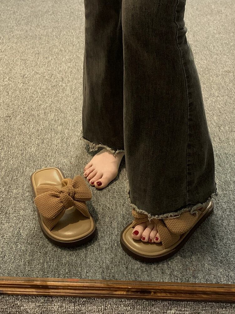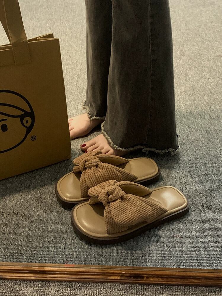 スリッパ女性のアウターウェア夏 2023 新しいファッション eign スタイル弓光と快適なソフトボトムワードサンダルとスリッパ リボン ミュール 靴 シューズ サマー 夏物 jxjxf19204396635