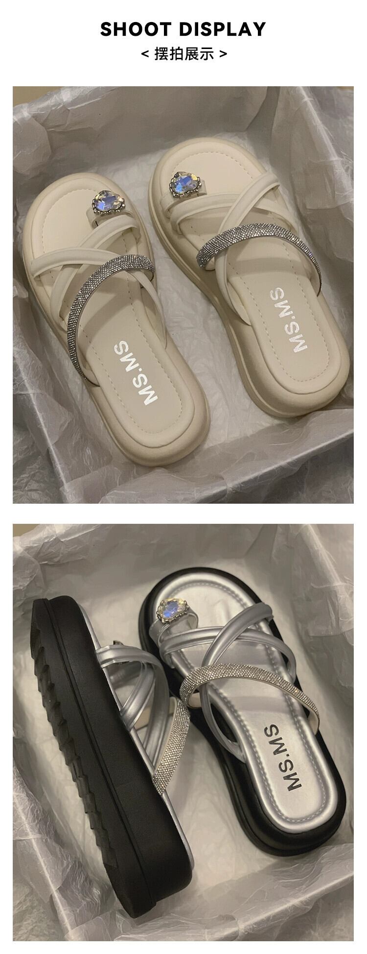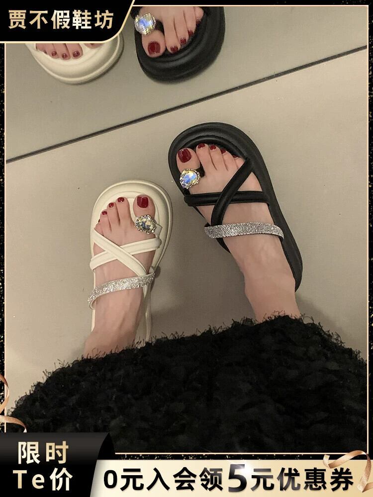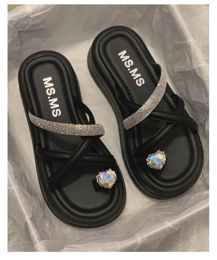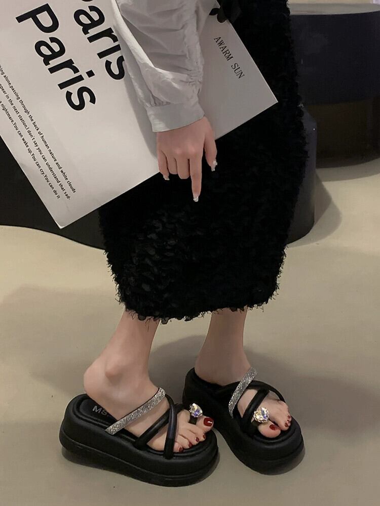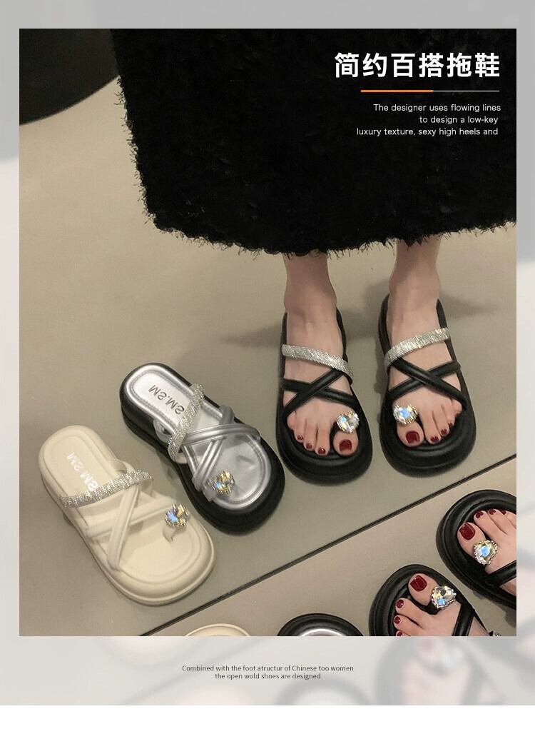 2023 年の夏のスーパーサンダルとスリッパの女性の新しいファッションオールマッチレトロなスタイルのラインストーン厚底つま先スリッパ潮 ミュール 靴 シューズ サマー 夏物 jxjxf38756044718