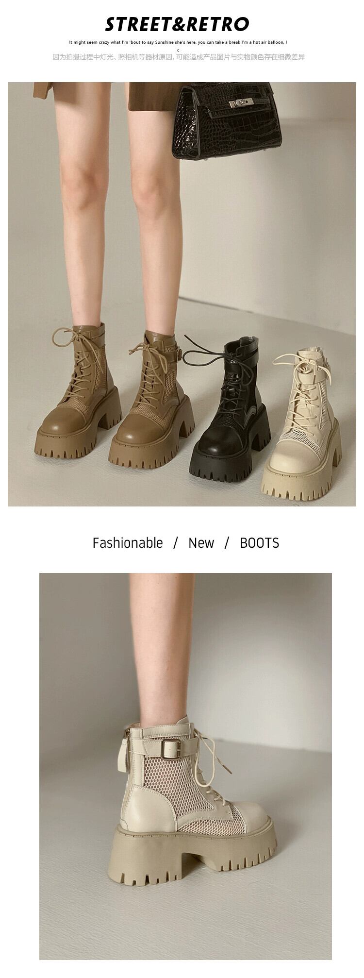 Jiabu 偽厚底ショートブーツ女性 2023 夏の新しいメッシュ表面通気性増加高さの小さなハンサムなクールブーツ潮 靴 シューズ サマー 夏物 jxjxf13825127052