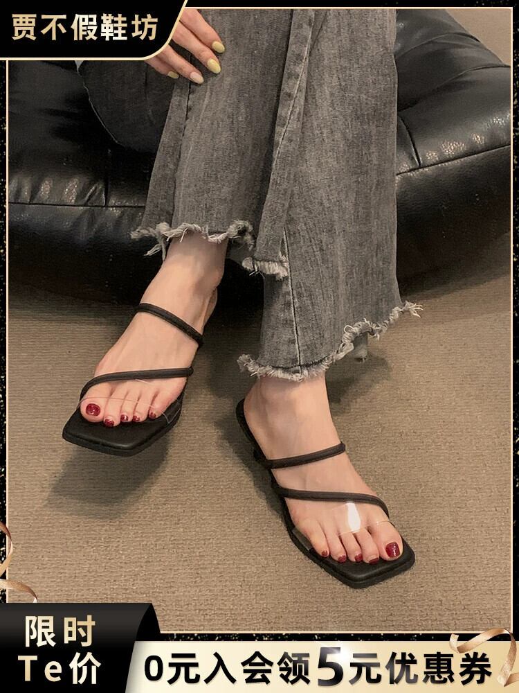 インターネットセレブスリッパレディースアウター 2023 夏の新ファッションオールマッチレトロ eign スタイル薄型ヒールノンスリップビーチサンダル ミュール 靴 シューズ サマー 夏物 jxjxf91604453840
