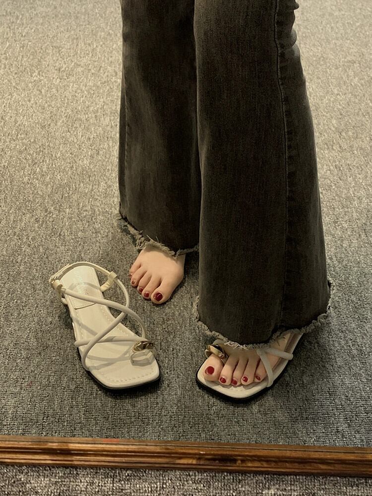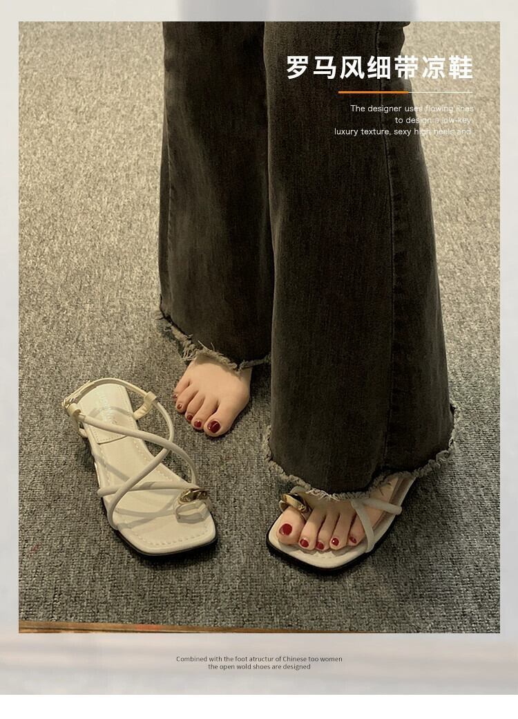 サンダル女性の 2023 夏の新しいネットレッドスーパーレトロオールマッチローヒールノンスリップ西洋スタイルスリッポンローマンシューズ 靴 サマー 夏物 jxjxf8413320175