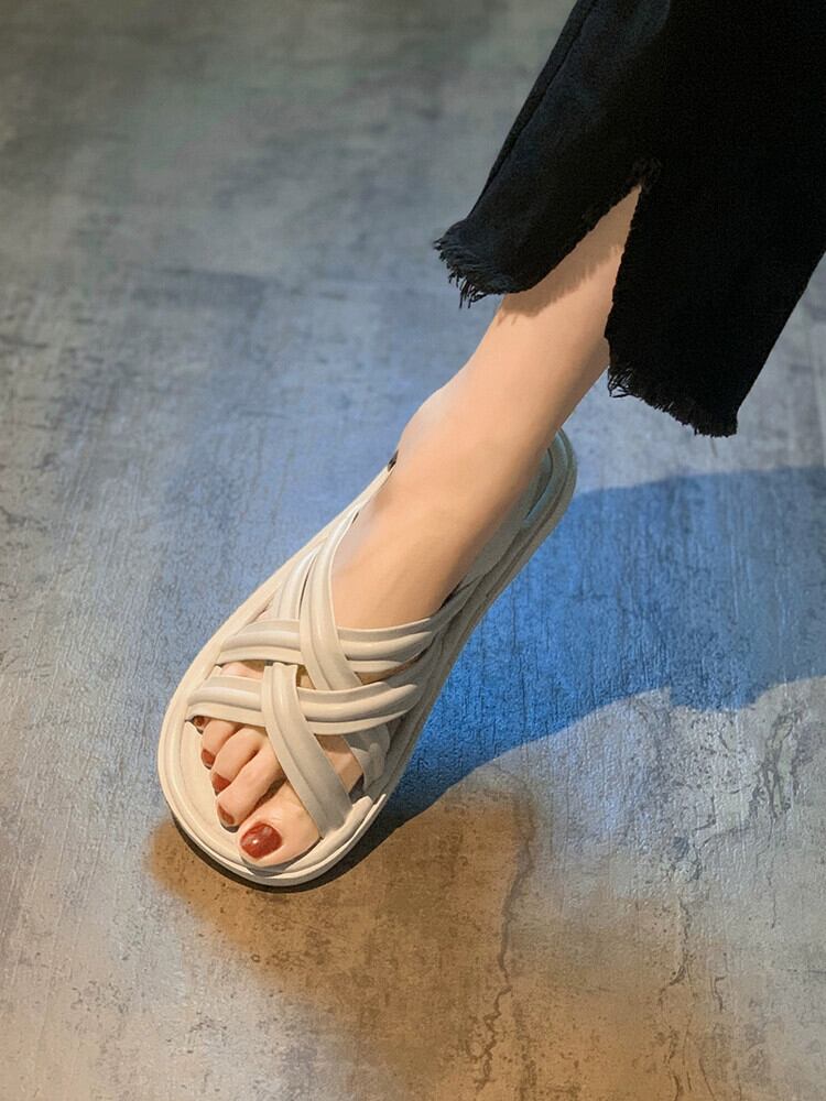 Jiabu 偽ローマサンダル女性の 2023 夏の新ファッション織り eign スタイル comtable 厚底カジュアルビーチシューズ 靴 サマー 夏物 jxjxf41590162261
