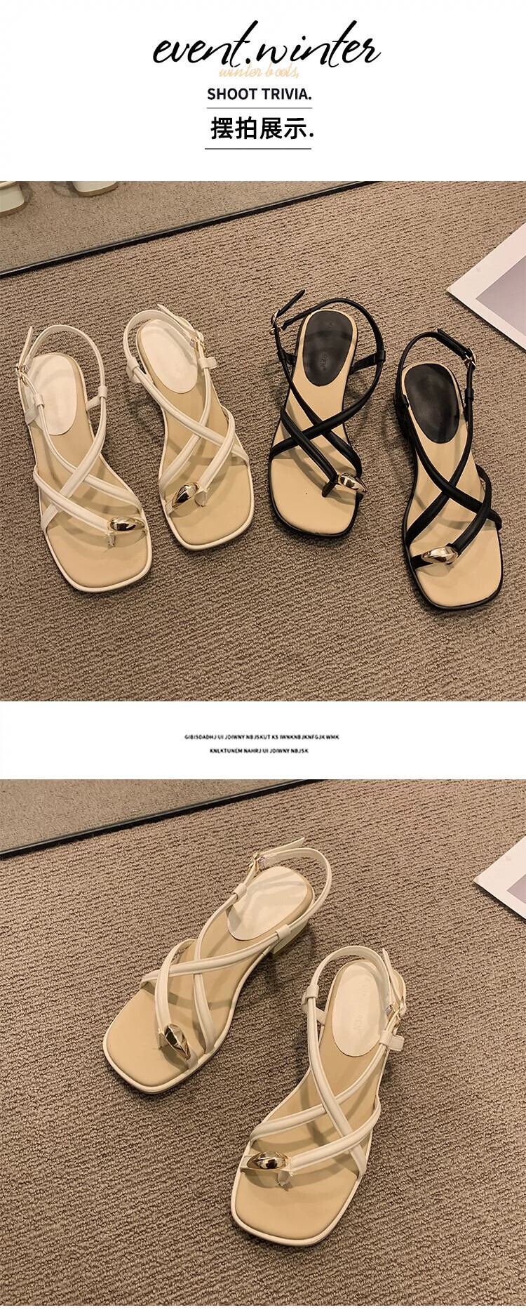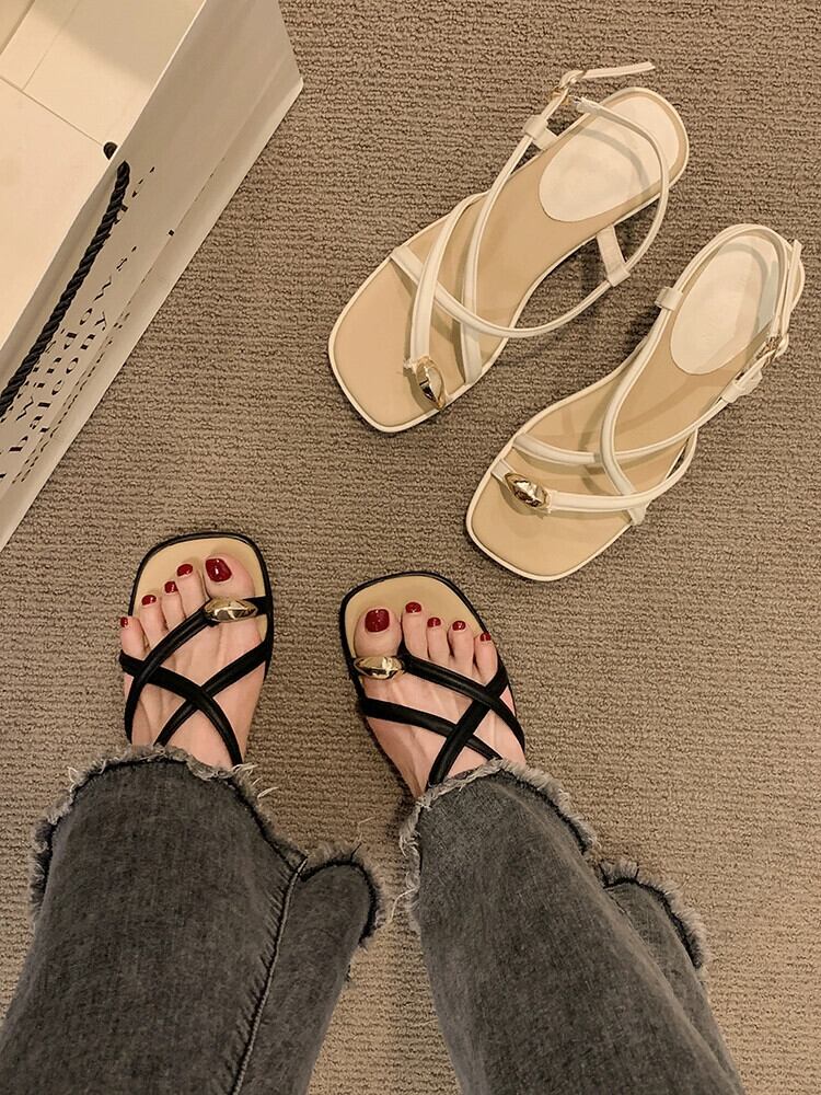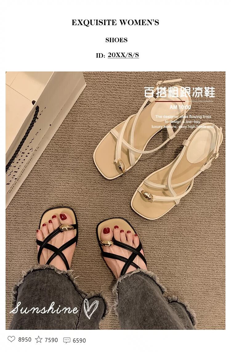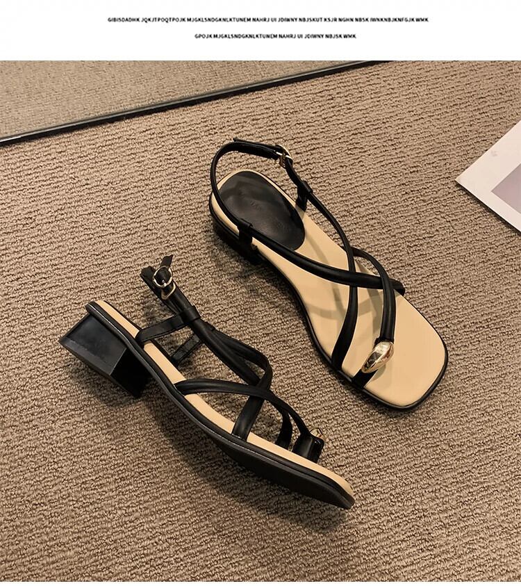 ネットレッドサンダルの女性の 2023 夏の新ファッションオールマッチレトロなスタイルの太いヒール滑り止め気質ローマの靴のトレンド シューズ サマー 夏物 jxjxf94387044250