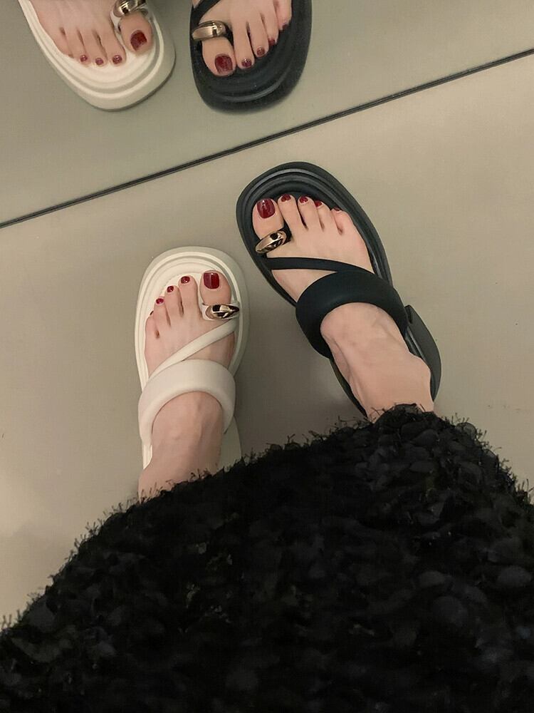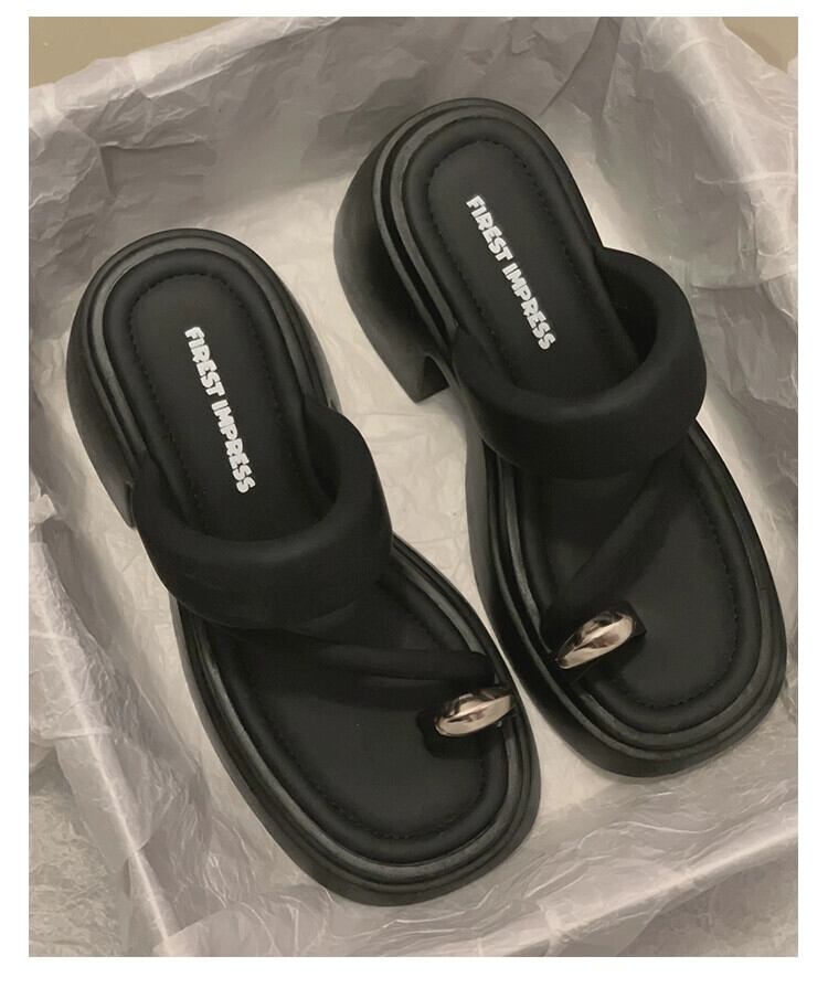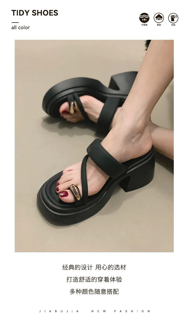 太いヒールスリッパレディース外出 2023 夏の新ファッションレトロシンプルな高められた小さなサンダル 靴 シューズ サマー 夏物 jxjxf72466463764