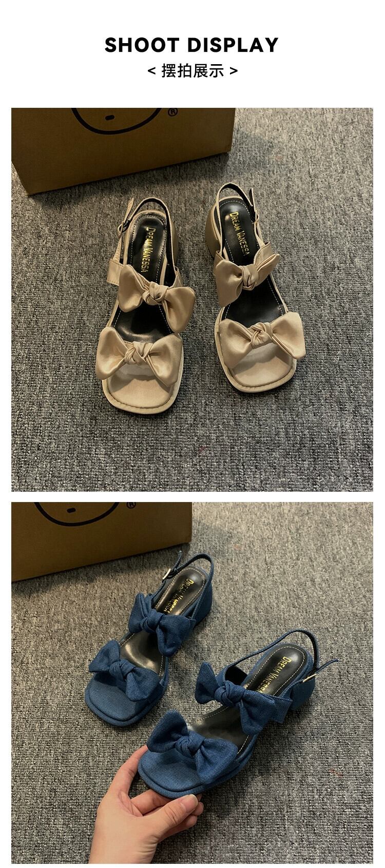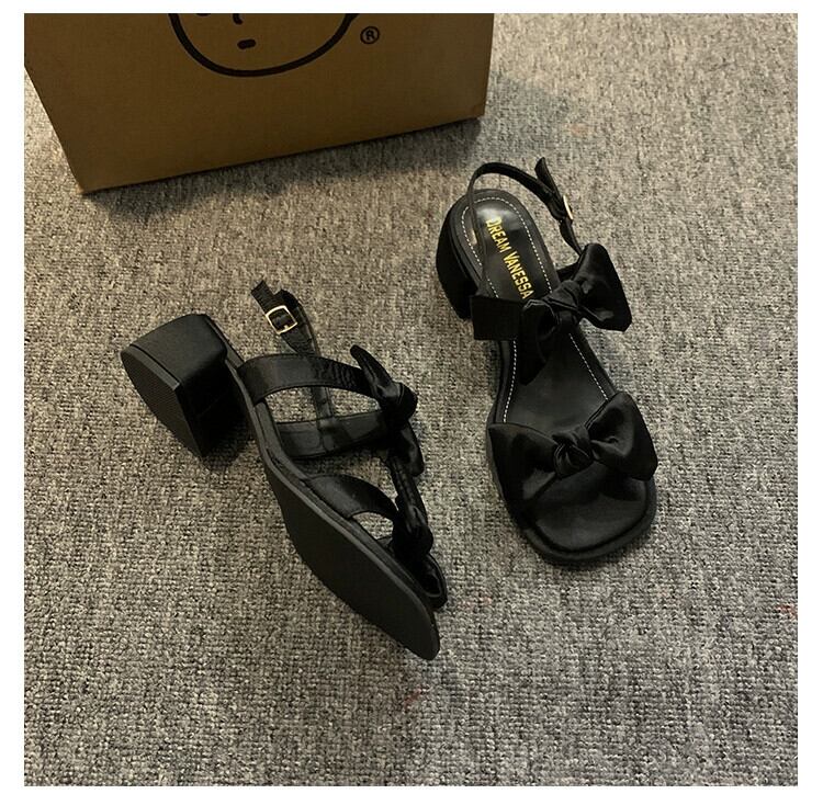 超厚いヒールサンダルの女性の 2023 夏の新しい eign スタイルの弓フレンチレトロオールマッチ気質ハイヒール リボン 靴 シューズ サマー 夏物 jxjxf56361558671