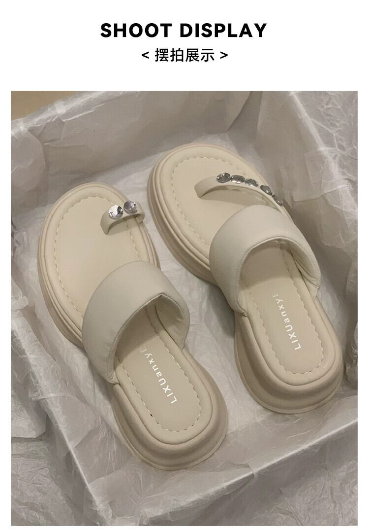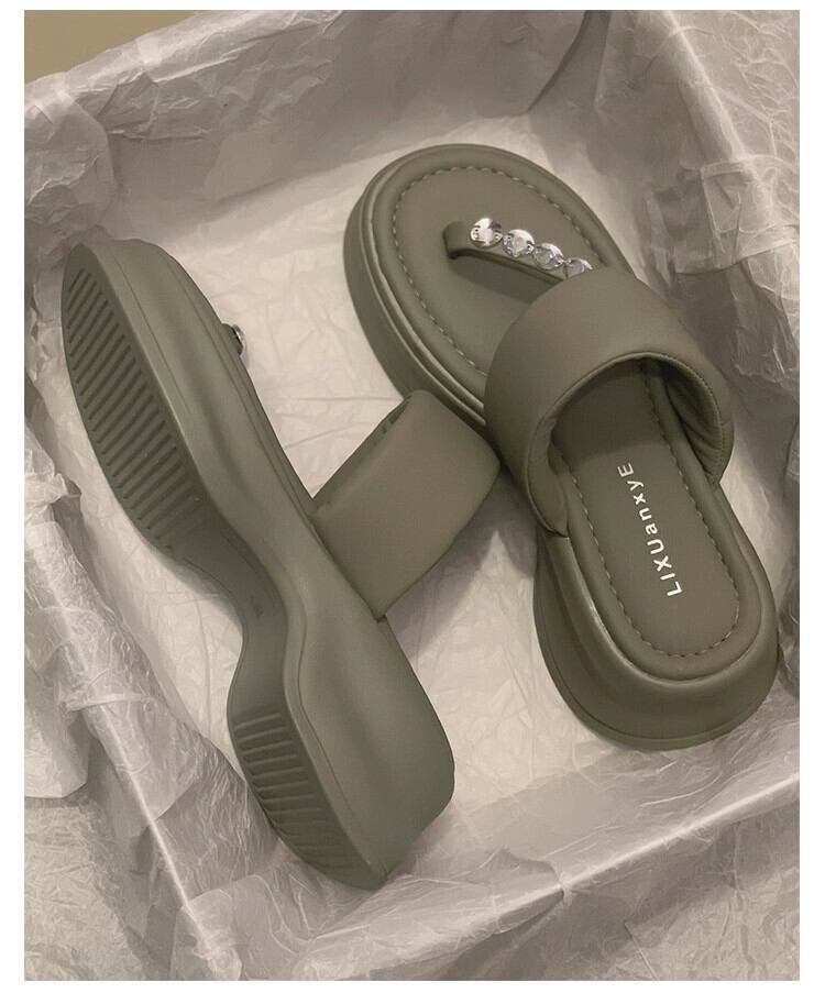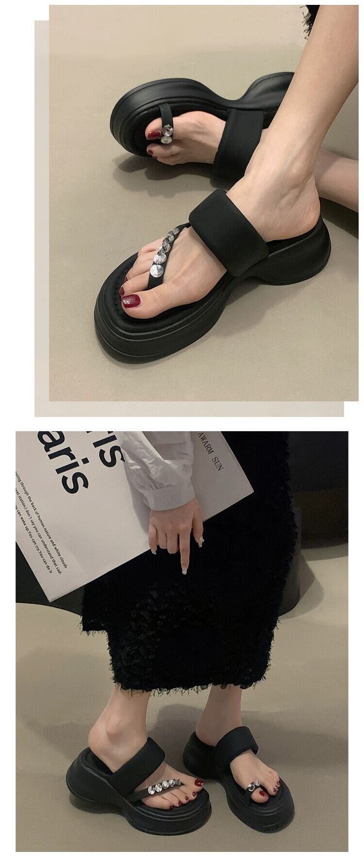 スーパーファイアチャンキーヒールスリッパレディースアウター 2023 夏の新ラインストーンフレンチレトロカジュアルピンチサンダルとスリッパ ミュール 靴 シューズ サマー 夏物 jxjxf36413060108