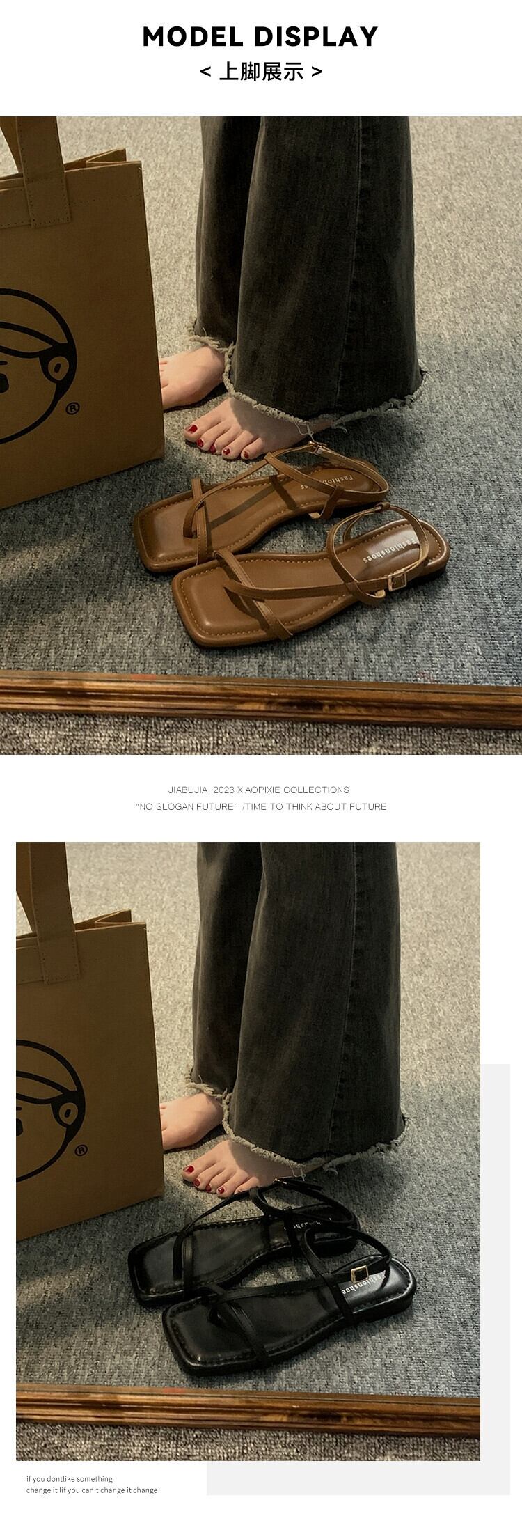 ローマサンダル女性の 2023 夏の新スーパーフレンチレトロ eign スタイルローヒール comtable カジュアルビーチシューズ潮 靴 サマー 夏物 jxjxf32918952945