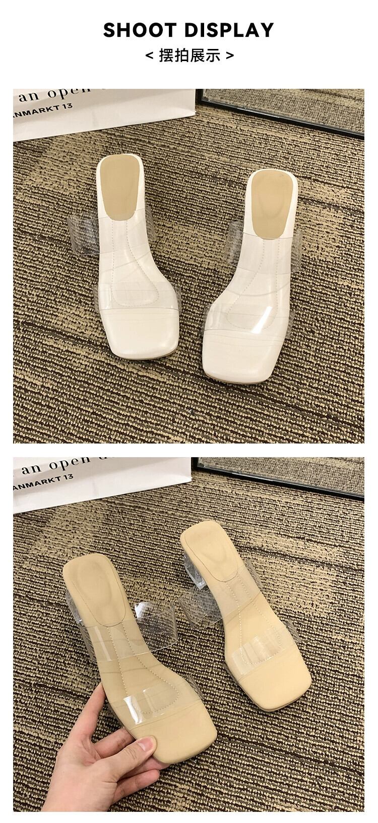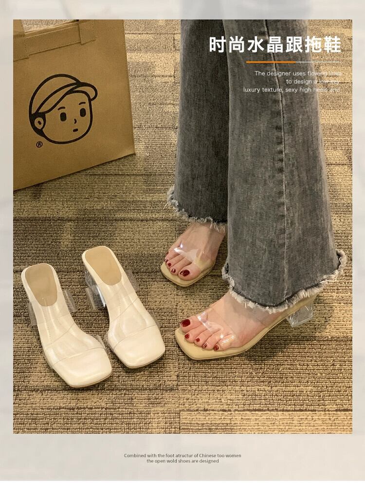 スリッパレディースアウター 2023 夏の新スタイルフレンチレトロ優しい透明な単語とクリスタルハイヒール潮 靴 シューズ ミュール サマー 夏物 jxjxf57613018127