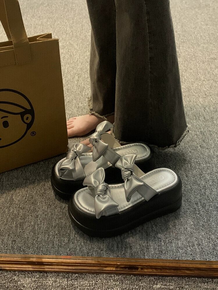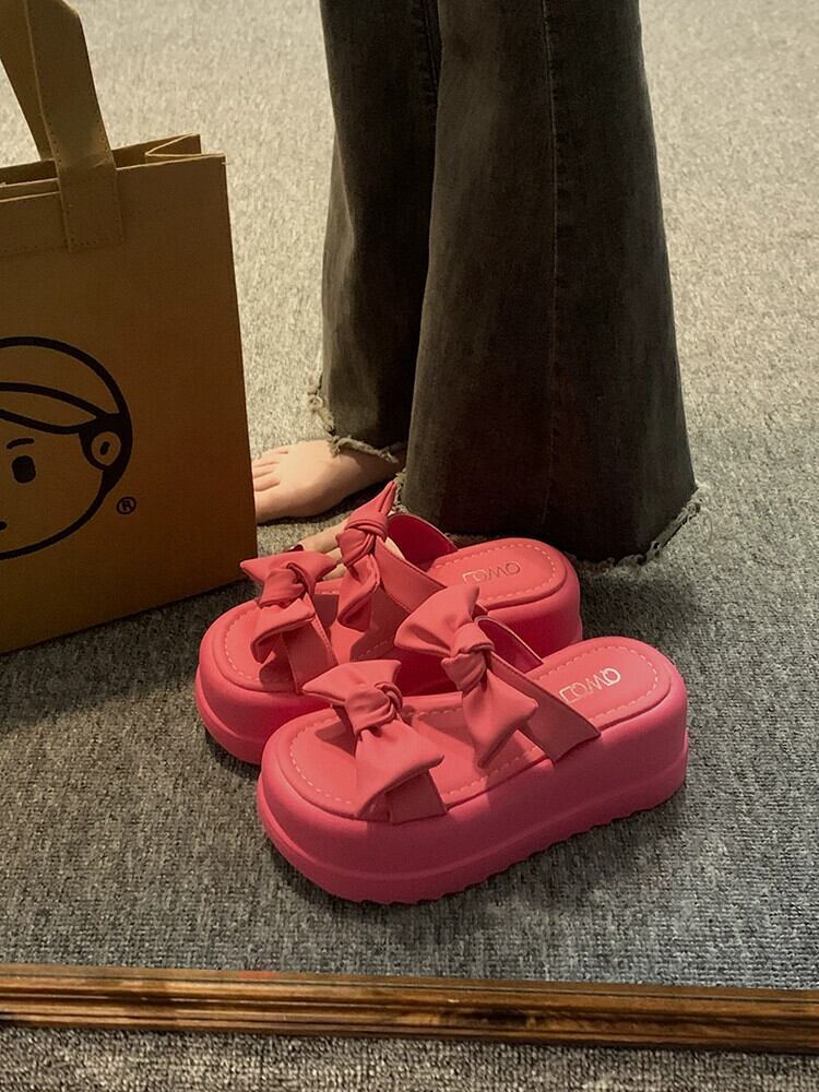 2023年夏の女性用ビーチサンダルアウターウェア、新しいファッション、蝶結びマフィン、厚底サンダルとスリッパのトレンド リボン ミュール 靴 シューズ サマー 夏物 jxjxf70646105125