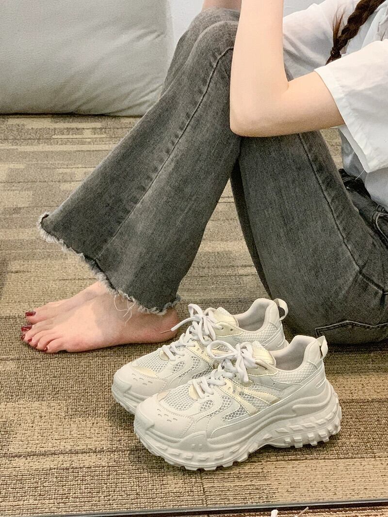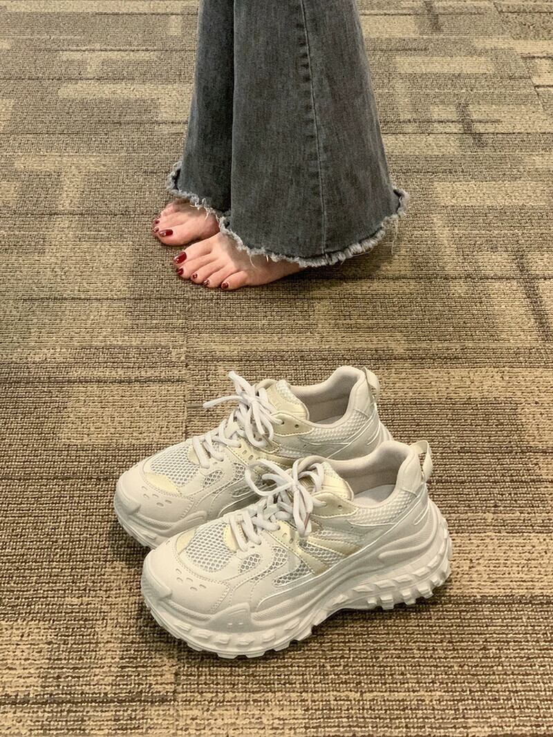 厚底スニーカー女性の 2023 夏の新ネットレッドファッションレトロメッシュ通気性のある comtable カジュアル古い靴 シューズ サマー 夏物 jxjxf26390937903